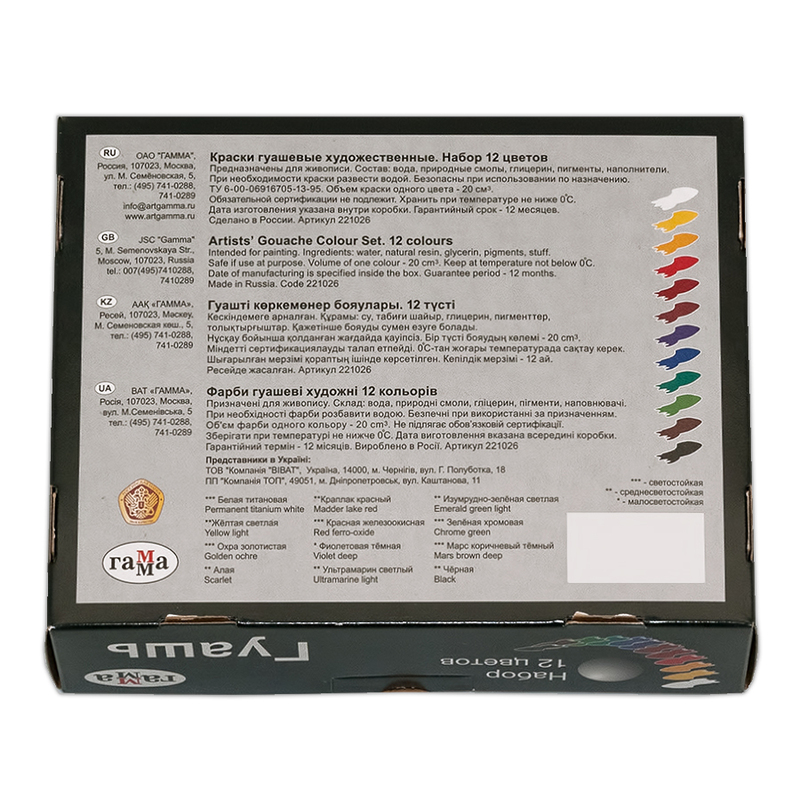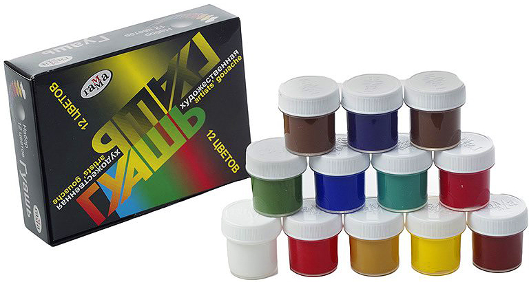 Набор художественных гуашевых красок, 12 цветов, 20 мл. Насыщенные и яркие цвета. Краски хорошо разносятся на бумаге.