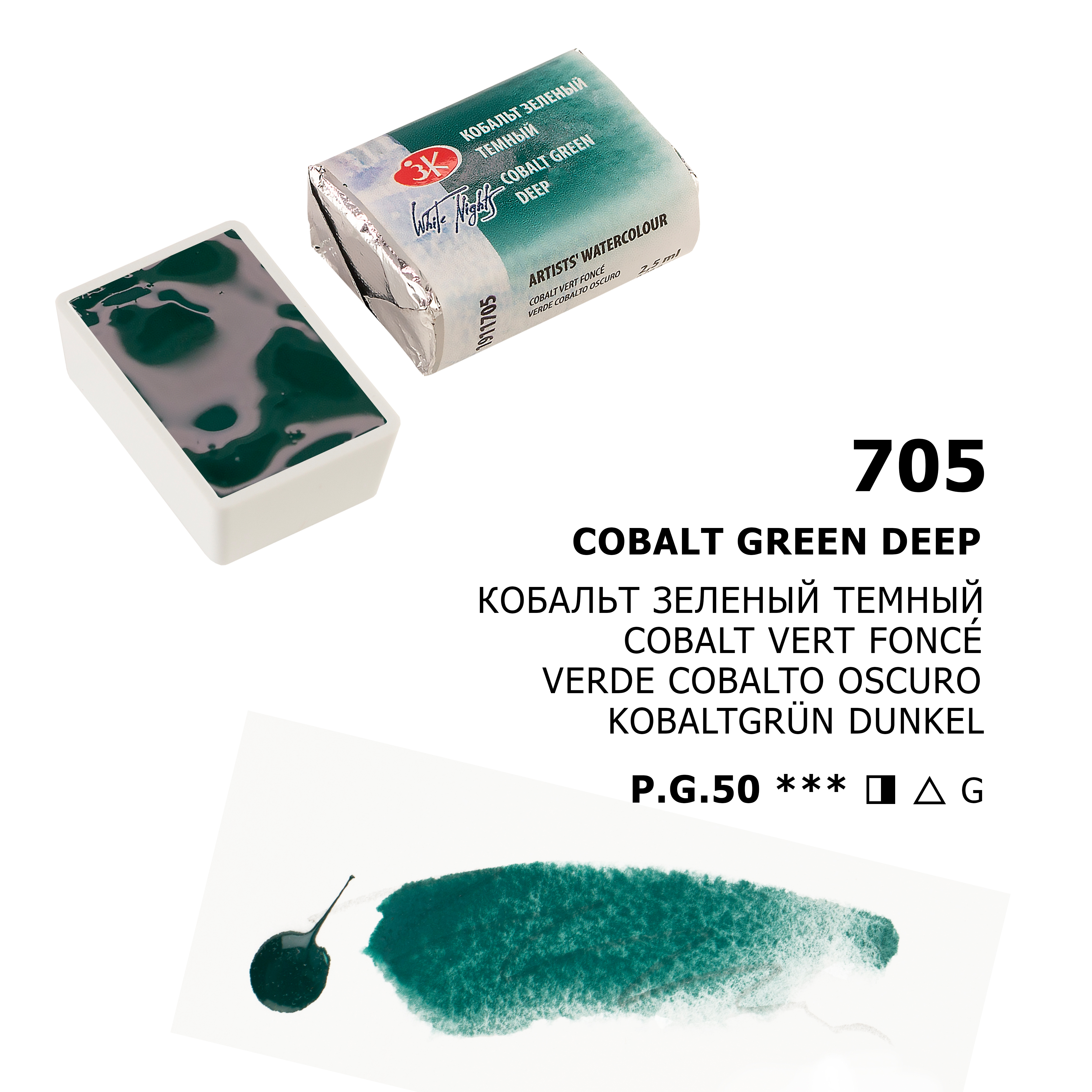 Акварель "Белые Ночи", Кобальт зеленый темный, №705, 2,5мл