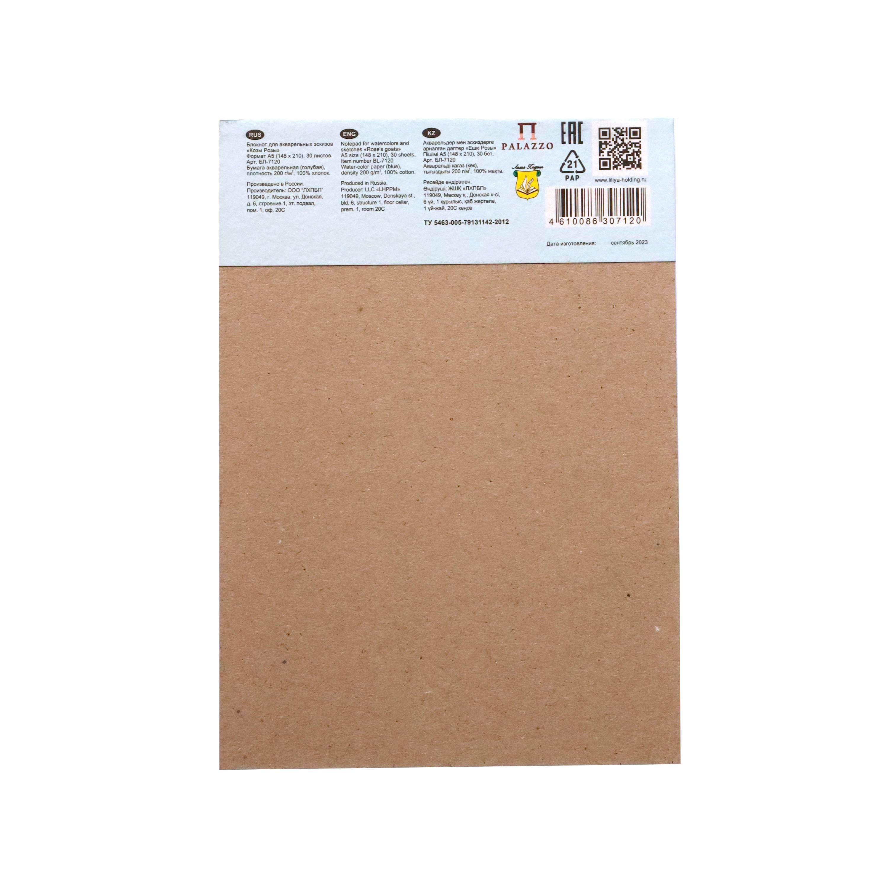 Блокнот для акварельных эскизов "Козы Розы" А5, 200г/м2, 100% хлопок, 30л с листами голубого цвета.