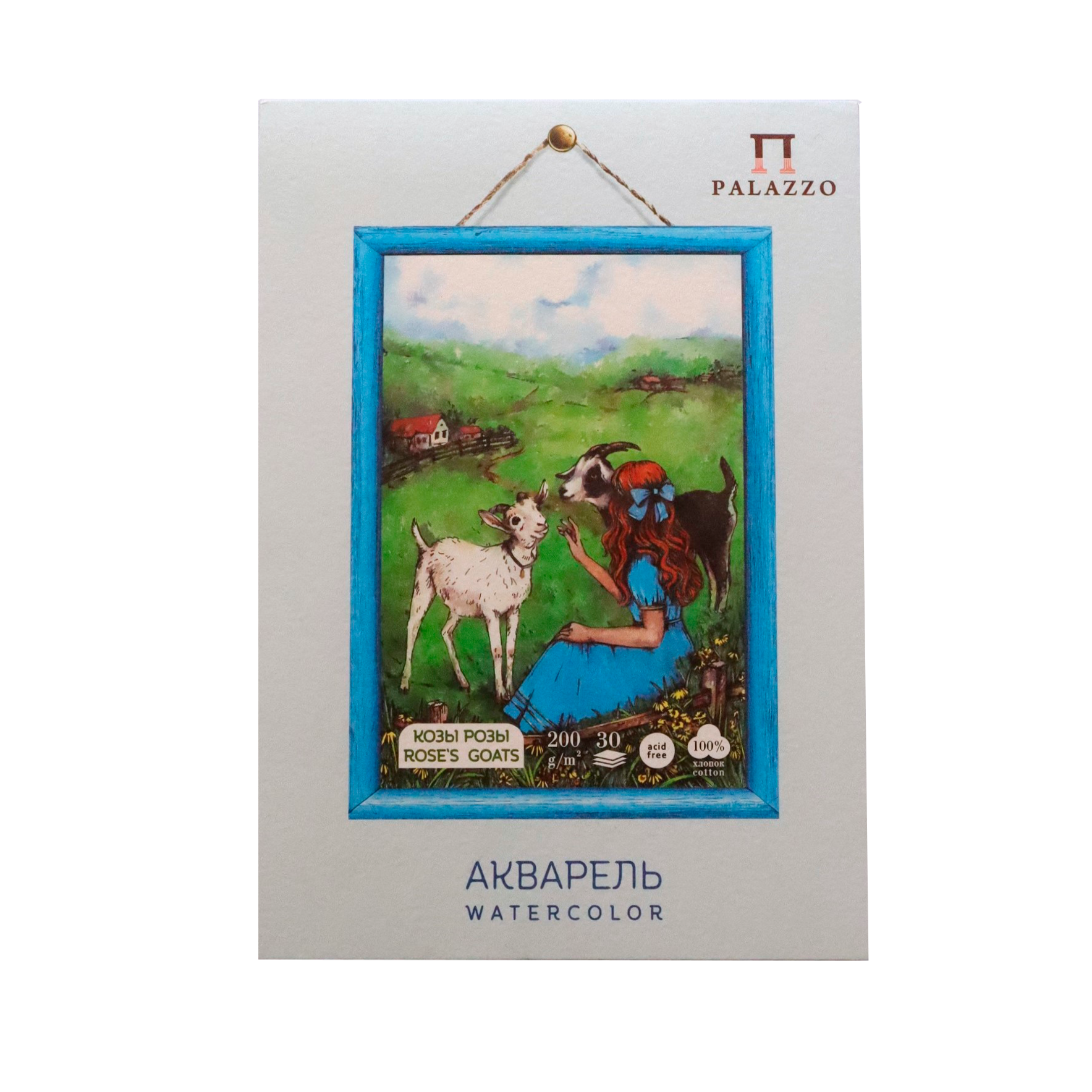Блокнот для акварельных эскизов "Козы Розы", голубой, А5, 200г/м2, 100% хлопок, 30л.