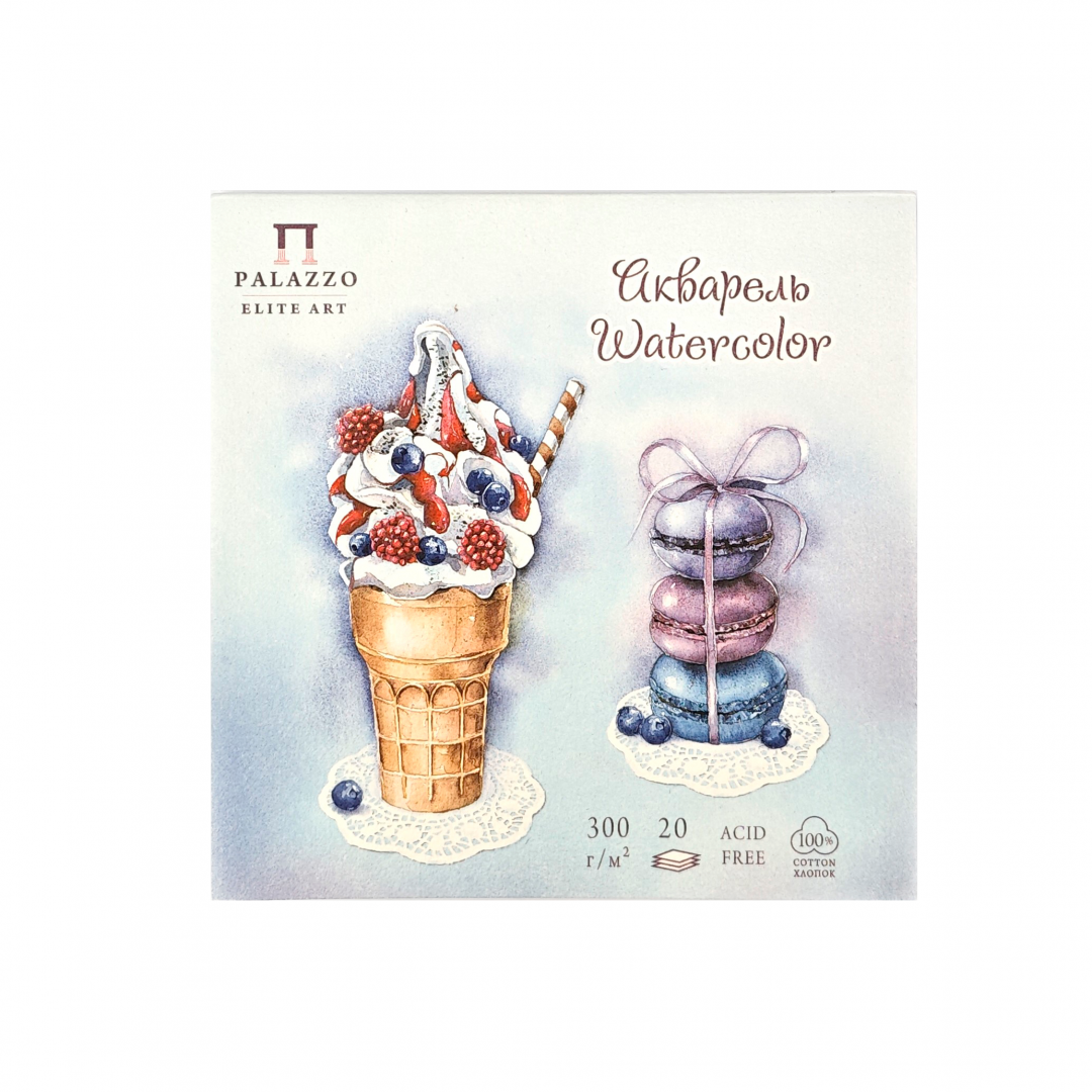 Планшет д/акварели "Кондитерская", голубой, 200х200, 300г/м2, 100% хлопок 20л.