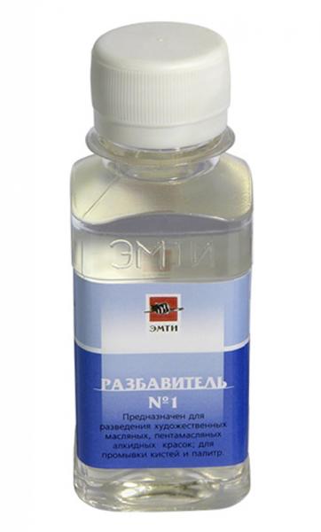 Разбавитель №1 - представляет собой уайт-спирит со скипидаром, и применяется в живописи для разведения масляных, пентамасляных и алкидных художественных красок. Не подходит для разбавления лаков.