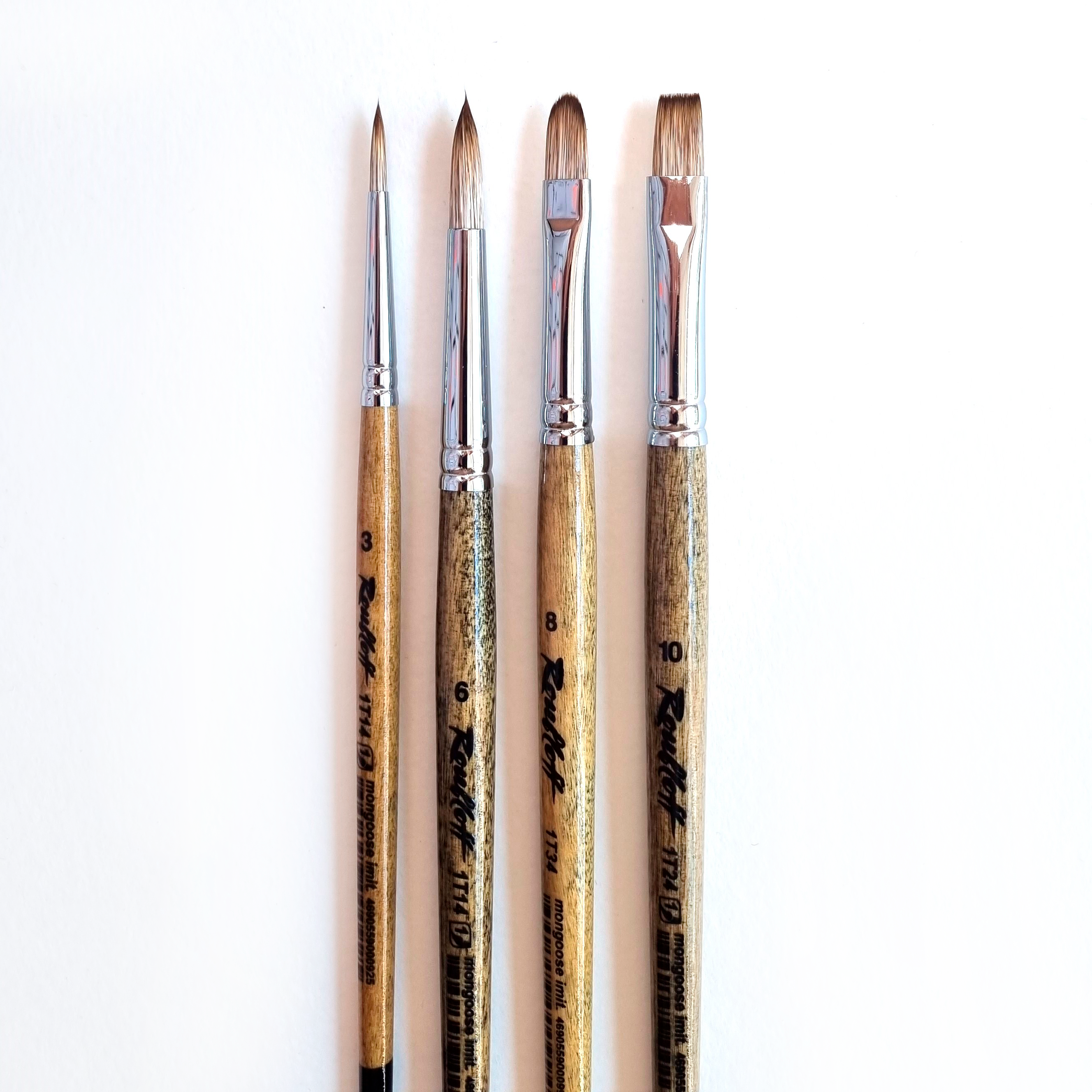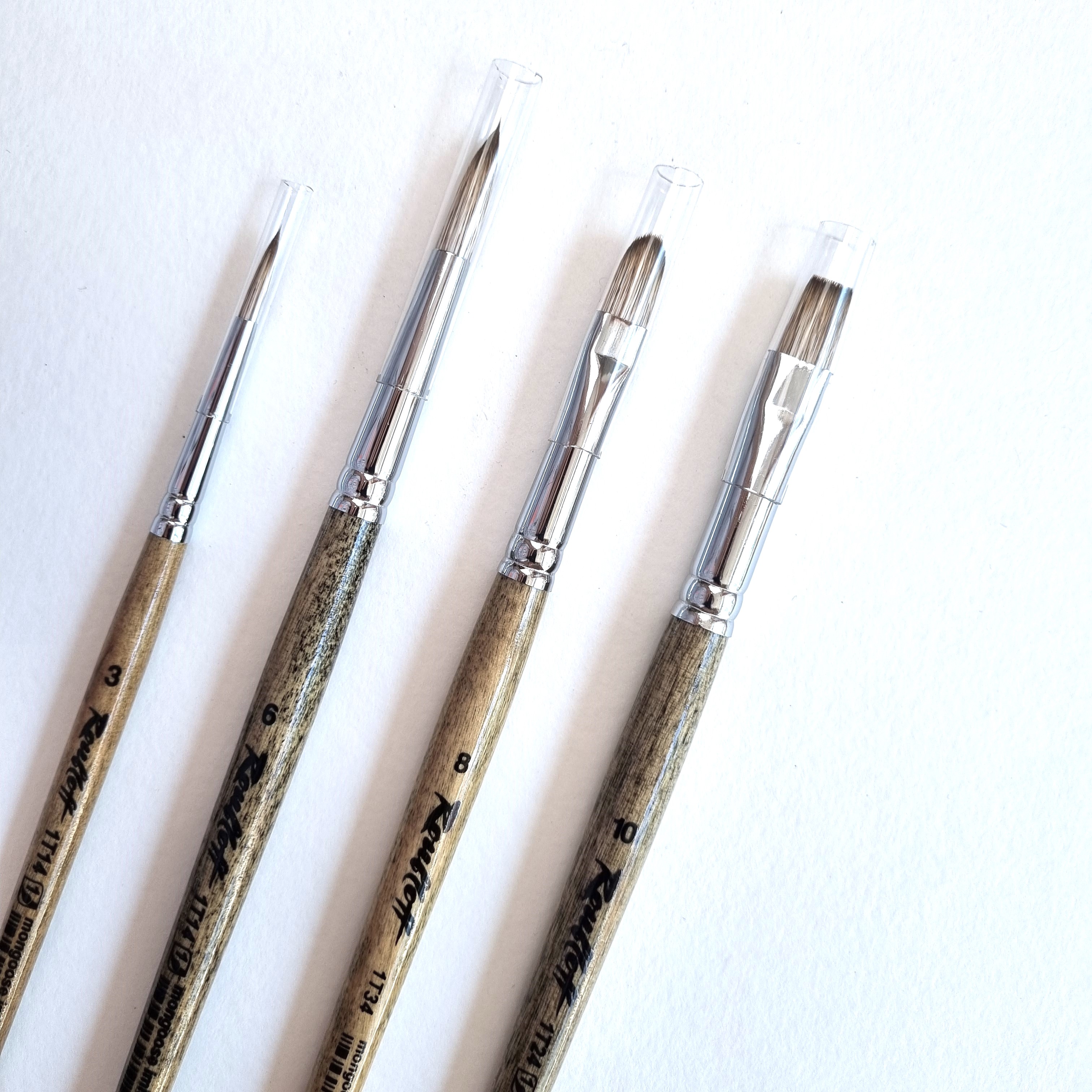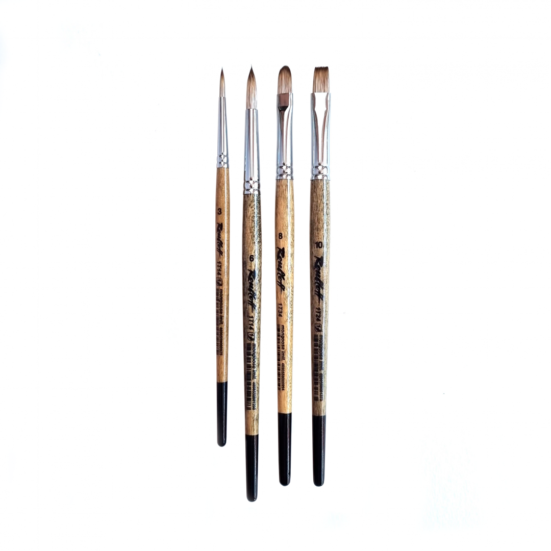 Набор кистей из им. мангуста, №10, №8, №6, №3, ассорти