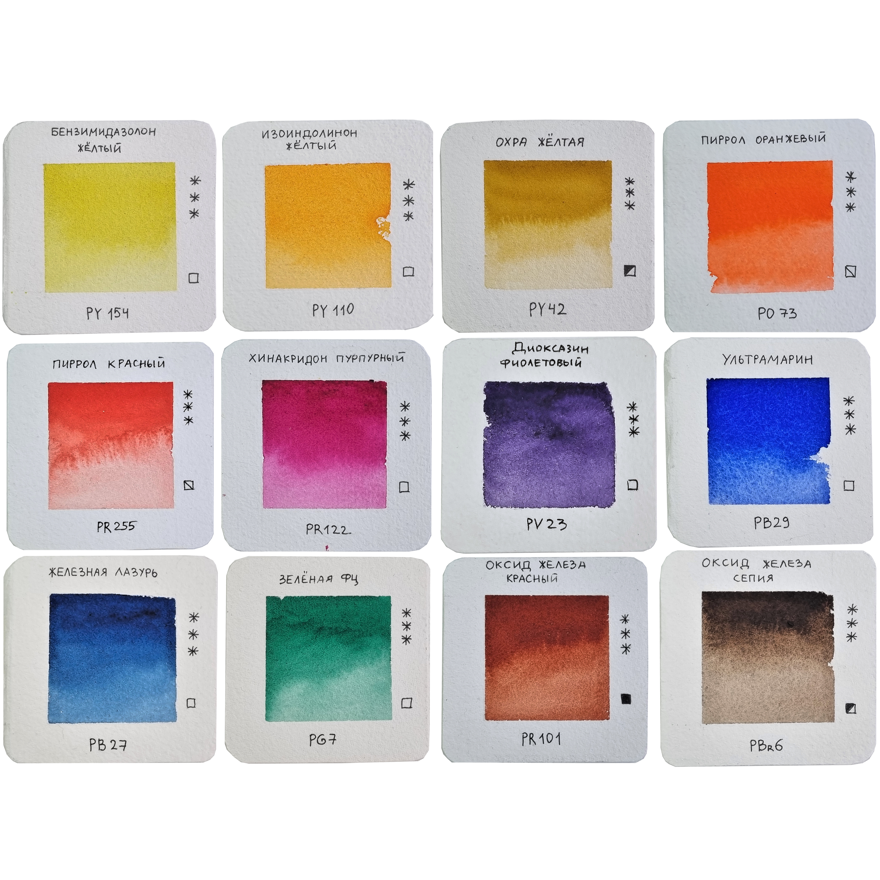 Набор однопигментной акварели "Extra", 12 кювет, "Основная палитра"