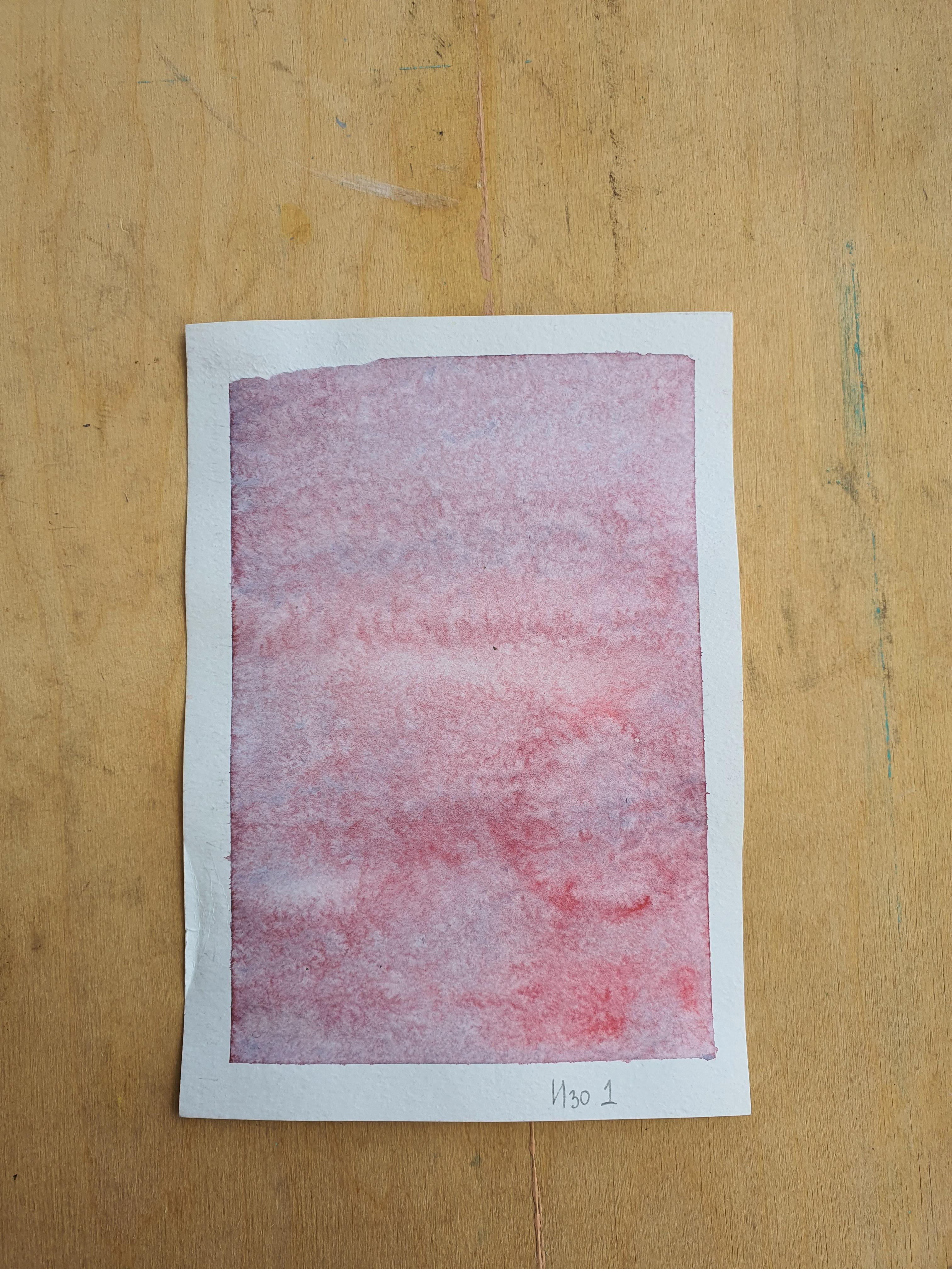 После высыхания - деформация листа слабая (при формате а5)- неровности заметны только с обратной части листа). Экстремальная заливка выдала - местами мягкие всполохи и деликатное распадание пигментов, и, в тоже время, участки с сильной неравномерной концентрацией пигмента.