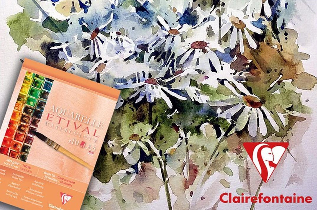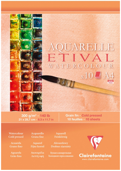 Альбом для акварели 10л., А4, на склейке Clairefontaine "Etival", 300г/м2, холодное прессование