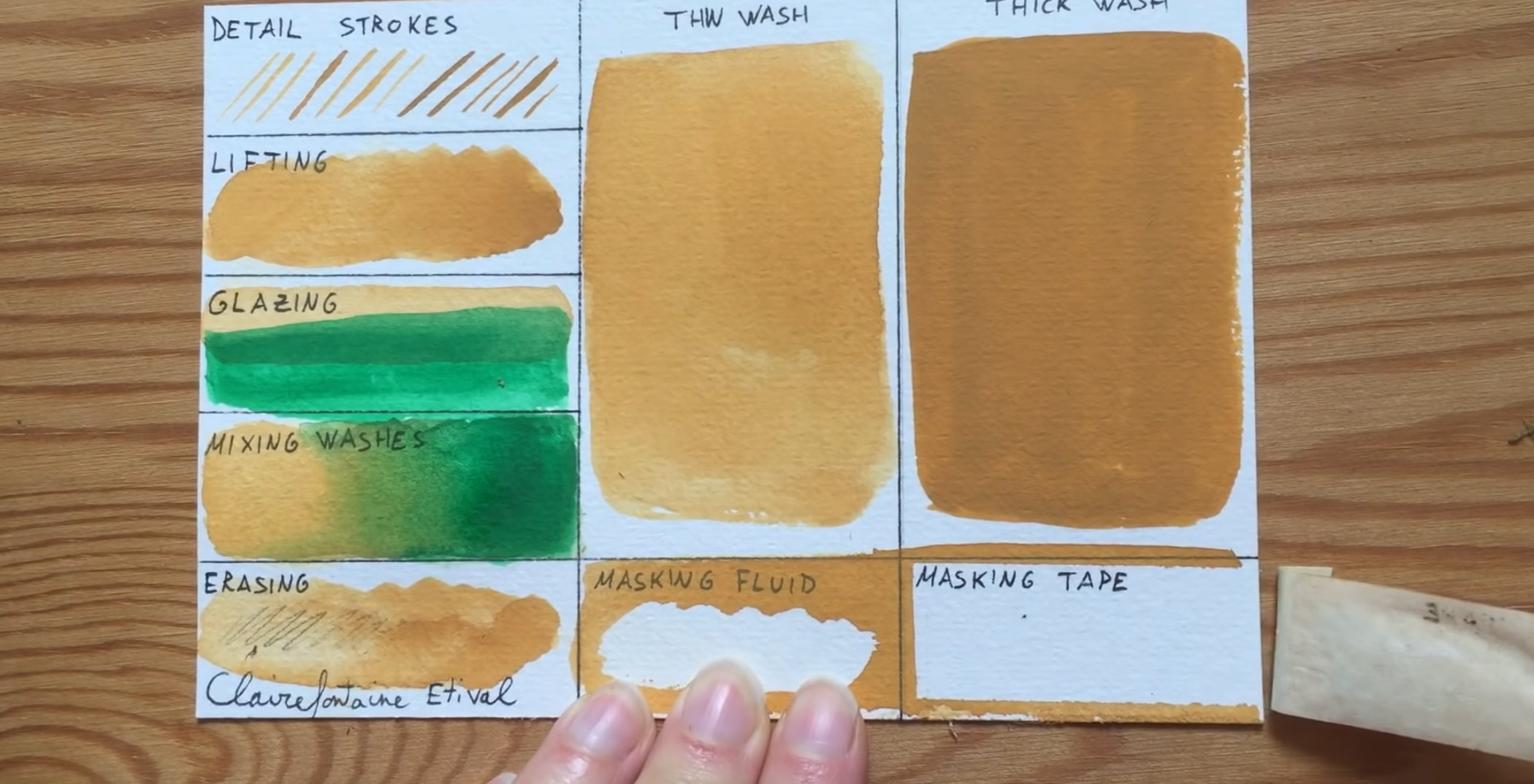 Краску легко наносить и смешивать прямо на самой бумаге, но следует подождать высыхания слоя, перед тем как наносить следующий, если художнику важен контроль над краской (для сравнения, на хлопке бумага сразу принимает краску внутрь).