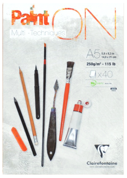 Альбом для смешанных техник 40л., А5, на склейке Clairefontaine "Paint'ON", 250г/м2, мелкозерн.