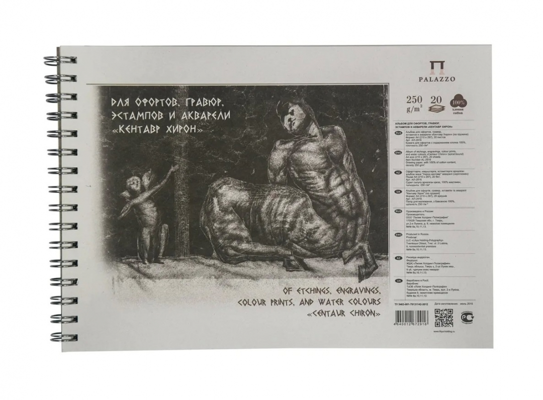 Альбом для офортов, гравюр, эстампов и акварели на пружине 20 л А2 "Кентавр Хирон"