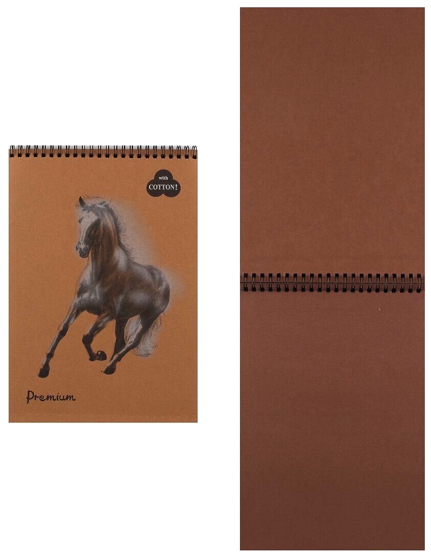 Блокнот на пружине Premium Cinnamon (корица) , 210*297 мм, 40% хлопок, 160 г/м2, тиснение холст, 30 листов.