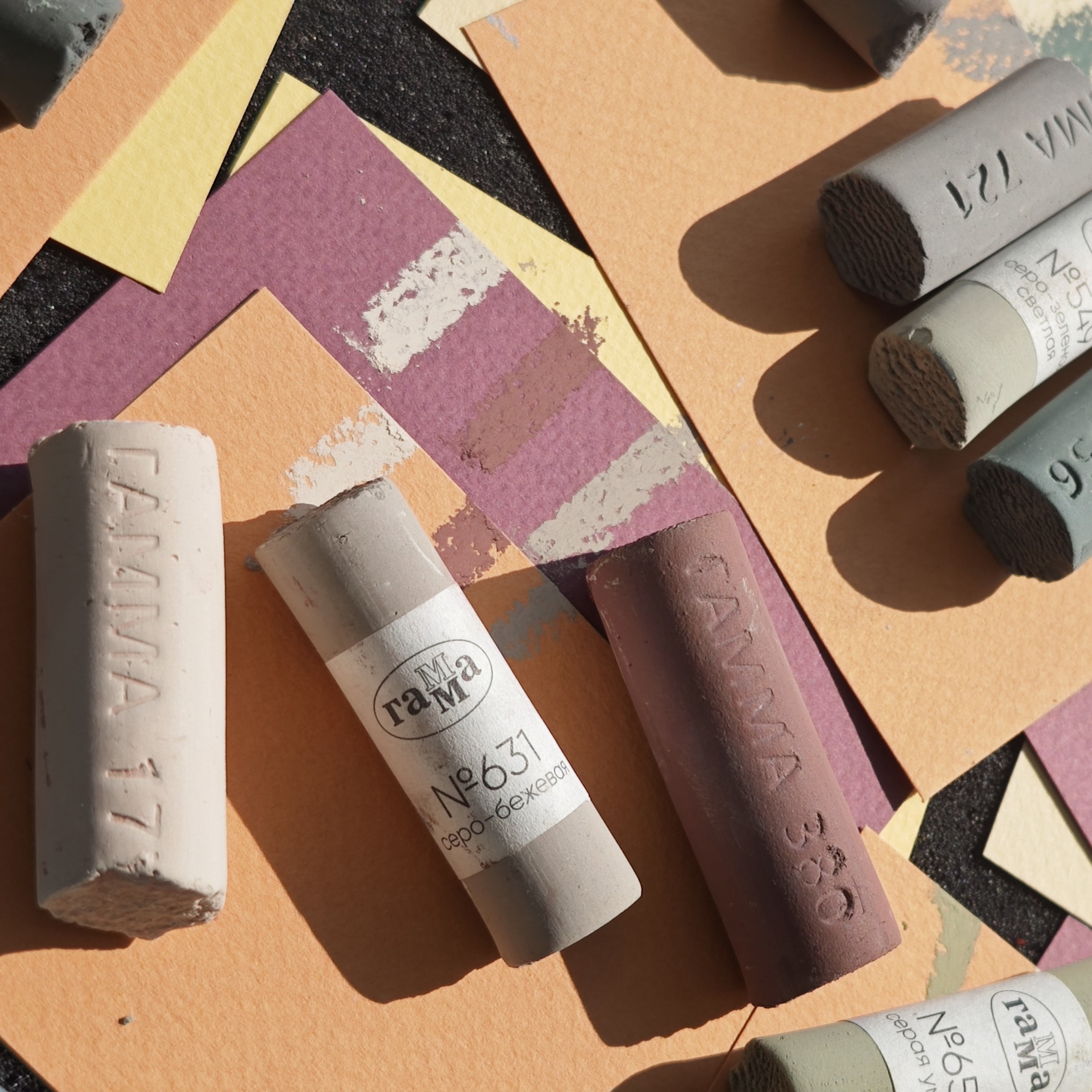Сухая художественная пастель «ГАММА» подходит для профессионалов и для начинающих художников. Каждый мелок оптимально мягкий и в меру хрупкий. Художественная пастель "ГАММА" обладает глубиной и интенсивностью цвета. Цвета в палитре легко смешиваются между собой и создают мягкие переходы одного оттенка к другому. Пастель ровно ложится на бумагу разных фактур.