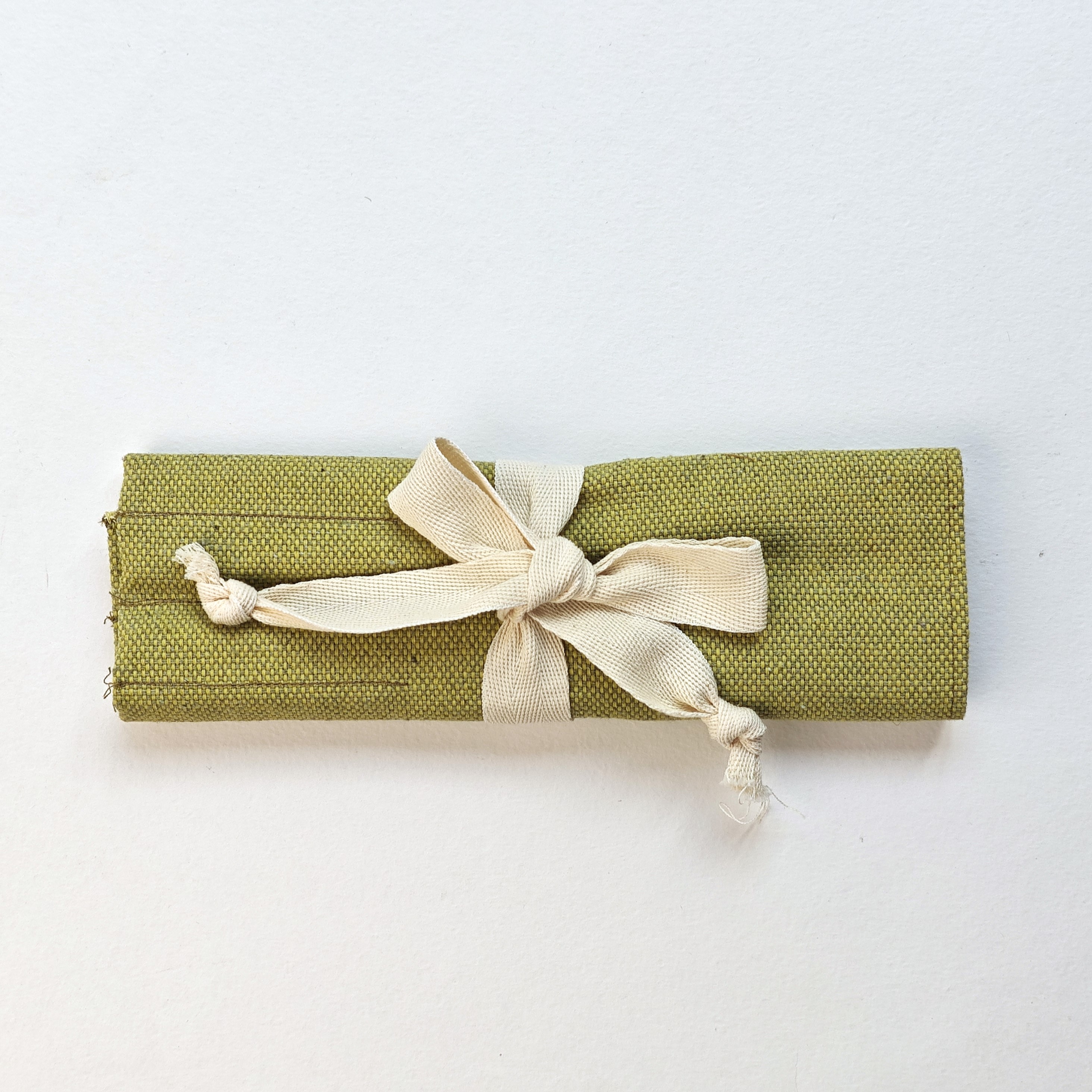 Пенал имеет размер 23х28 см. и выполнен из брезента (состав 41% лен и 59 хлопок). Завязывается на широкий светлый бант.