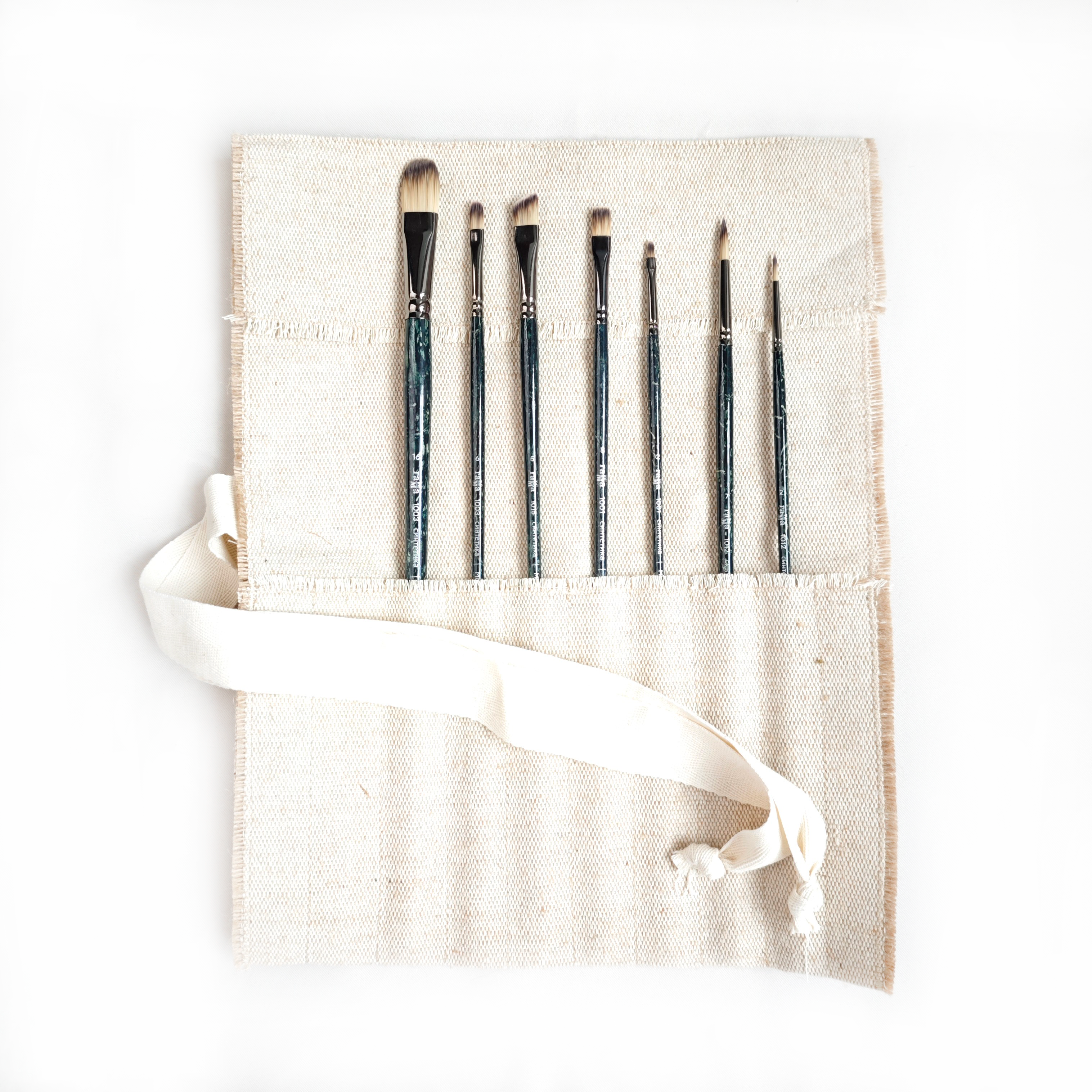 Набор представлен в тканевом пенале и способен стать готовым подарочным решением для любого художника, или просто ценным приобретением для тех, кто заинтересован в удобной транспортировке качественного набора кистей.