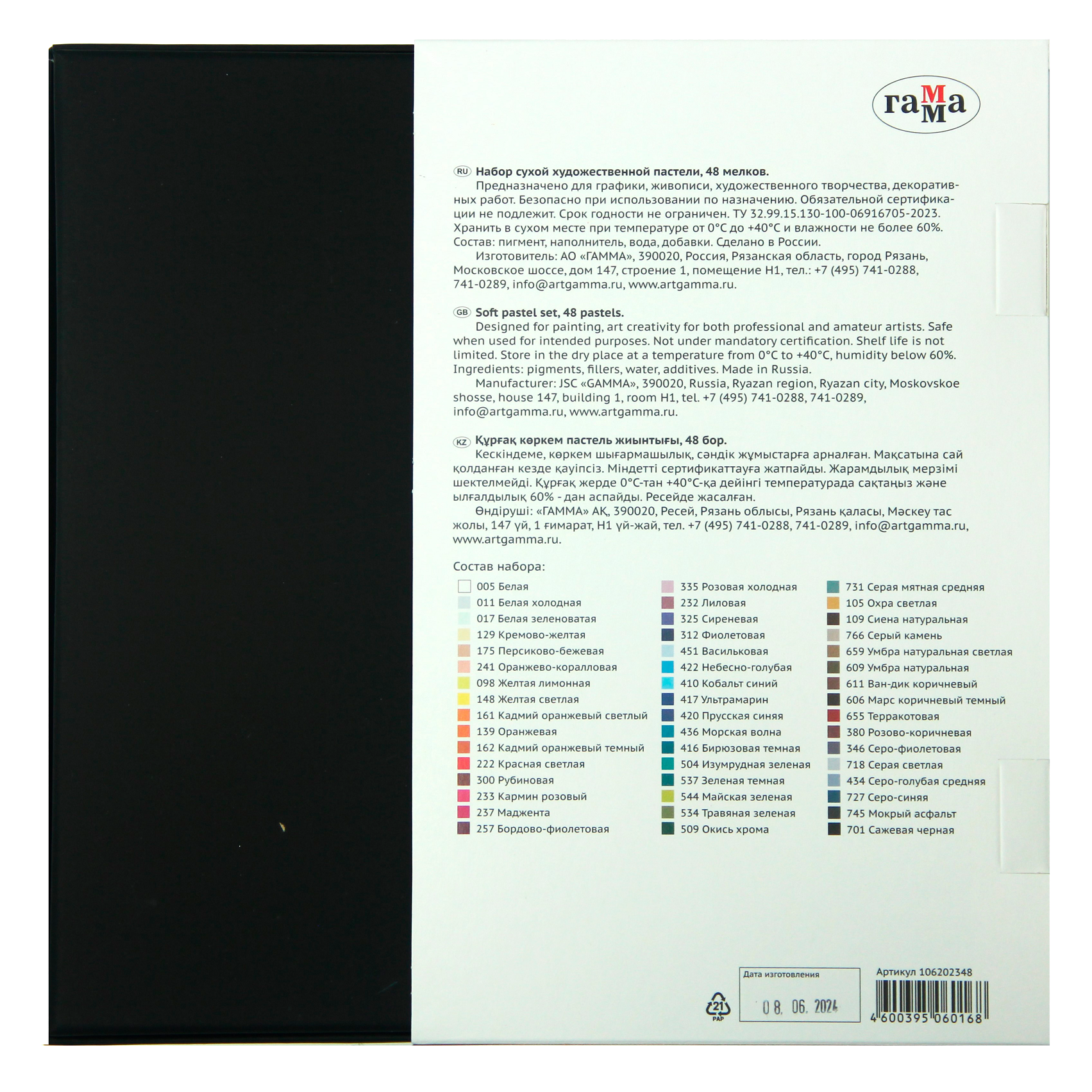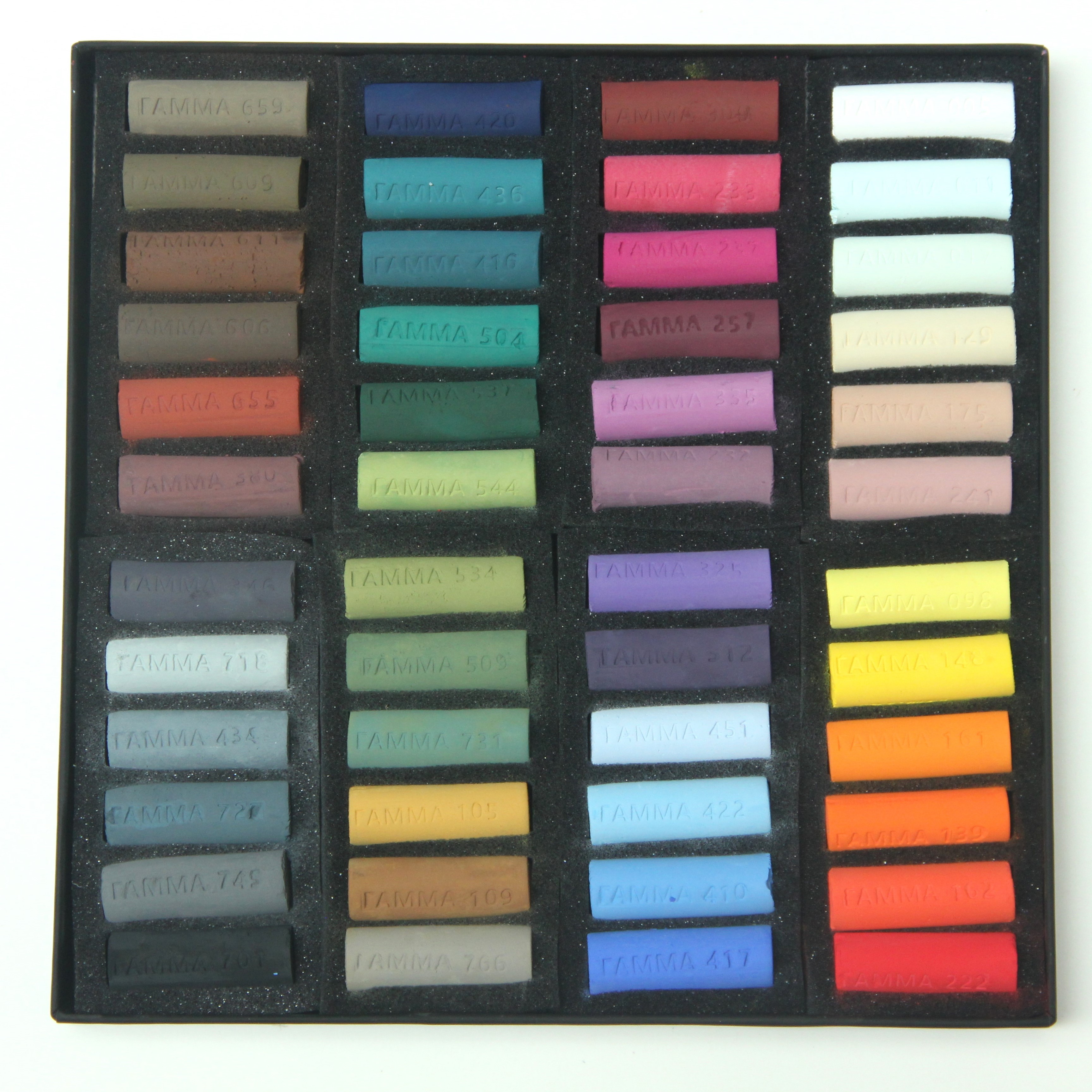Сухая художественная пастель «ГАММА» 48 базовых цветов подходит для профессионалов и для начинающих художников. Каждый мелок оптимально мягкий и в меру хрупкий. Художественная пастель ""ГАММА"" обладает глубиной и интенсивностью цвета. Цвета в палитре легко смешиваются между собой и создают мягкие переходы одного оттенка к другому. Цвета ровно ложатся на бумагу разных фактур. Для производства пастели используются тонкотертые пигменты и каолиновая глина высочайшего качества.