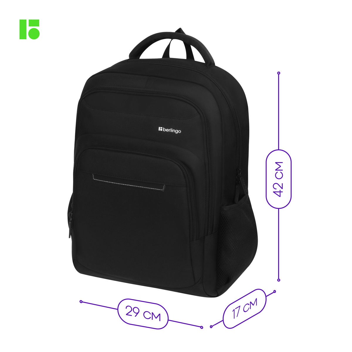 Рюкзак Strict black бренда Berlingo серии City представлен в размере 42*29*17 см, объёмом 20,7 литра.