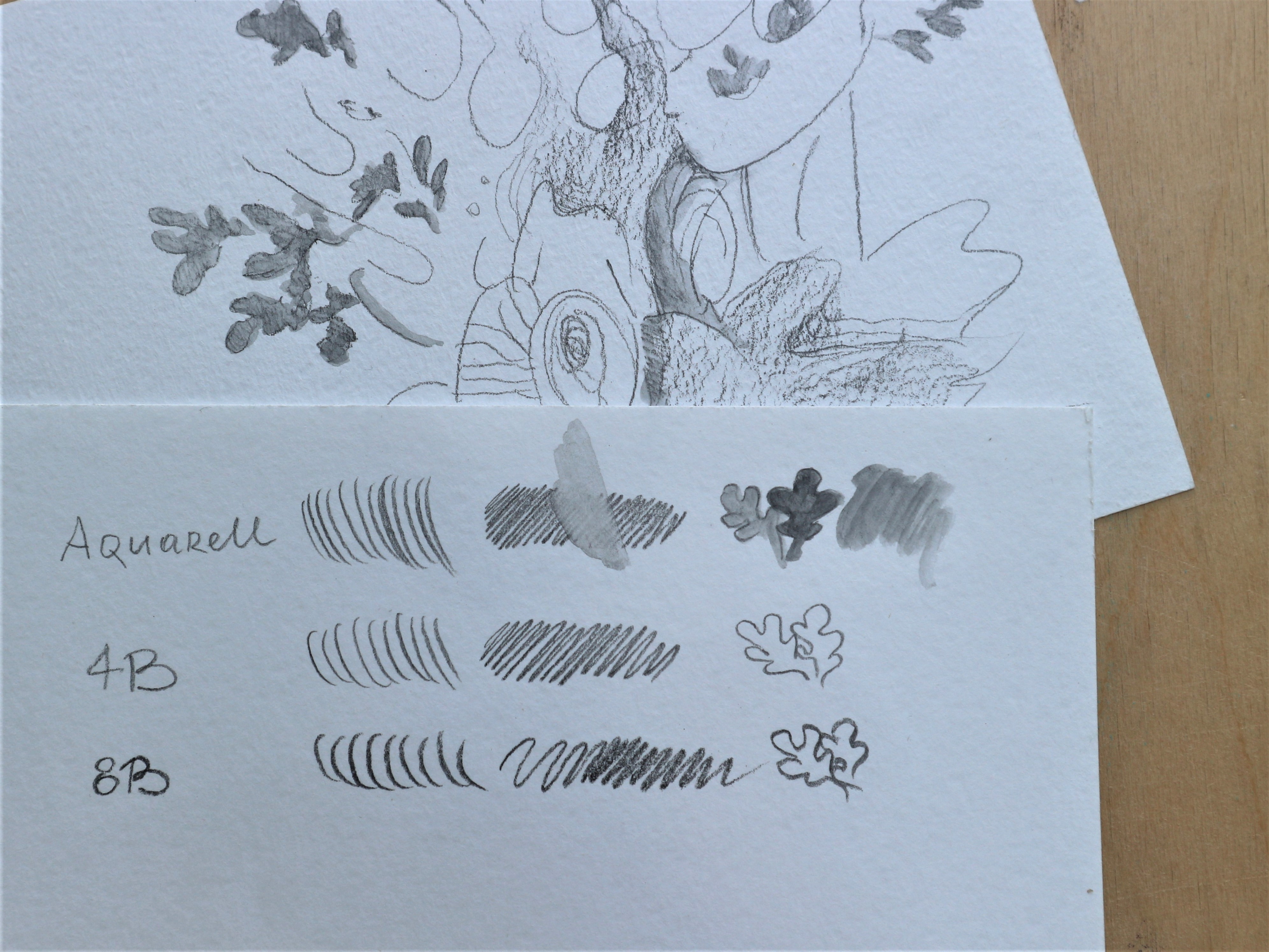 Графит акварельного карандаша очень легко размывается увлажнённой кистью. Степень видимости первоначальных штрихов сильно зависит от характера нанесения. Иногда-они очень заметны (при редкой штриховке например), а при большем закрашивании- удаётся добиться почти полной укрывистости и полного растворения графита (см. изо).