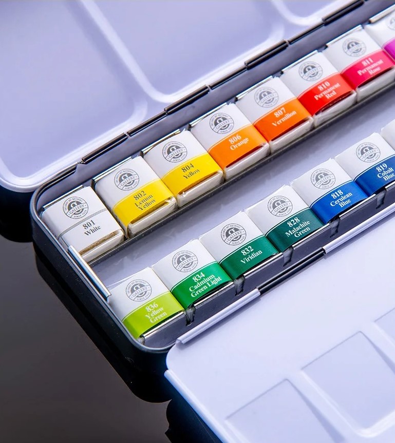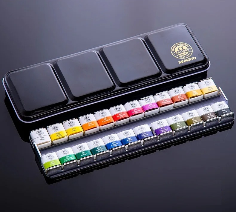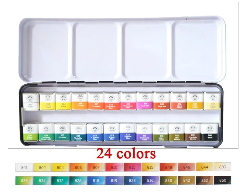 Акварельные краски "Gallery" 24 цв. кюветы в металлической коробке
