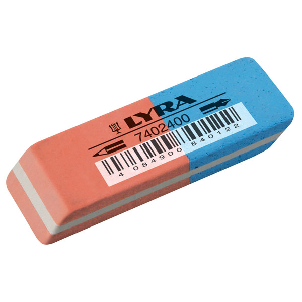 LYRA Ластик для карандашей и чернил двусторонний тверд\мягкий (красно-синий) 55*19*19 мм.