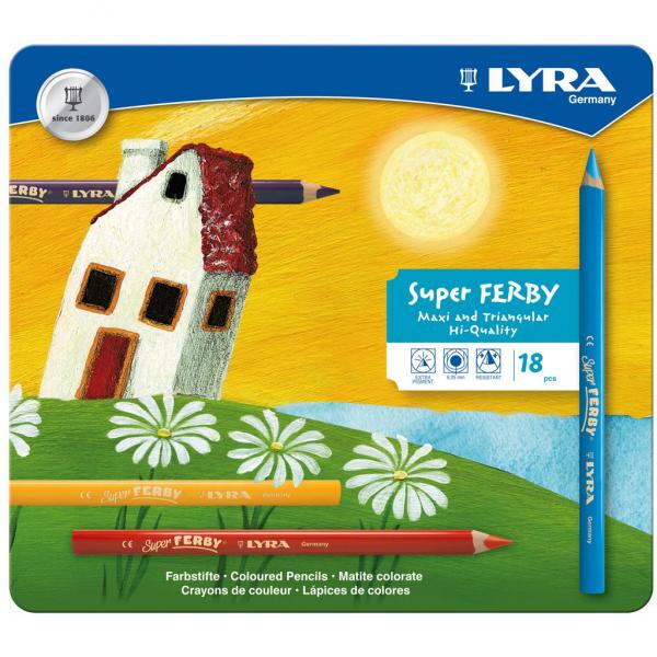 Высокопигментные цветные карандаши, 18 шт в упаковке. Эргономичная треугольная форма. Длина карандаша - 175 мм, диаметр грифеля 6,25 мм. Произведены из натуральной сертифицированной древесины, лакированные в цвет грифеля. Ударопрочные.