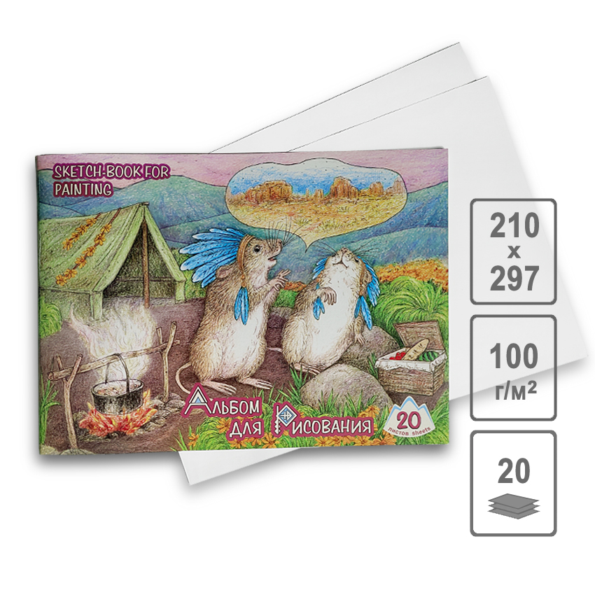 Альбом для рисования 20 л 210х297 "Быстрый Хвост и Острый Зуб" на скрепке