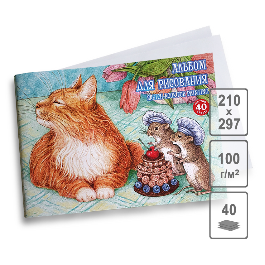 Альбом состоит из 40 листов белоснежной офсетной бумаги плотностью 100 г/м2, подходит для рисования цветными карандашами, фломастерами, восковыми мелками. Подойдет для занятий, как дома, так и в детском саду или школе.