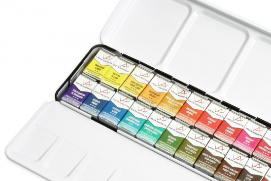 При помощи металлического пенала можно собрать свой индивидуальный набор акварели, состоящий только из любимых и необходимых оттенков красок.