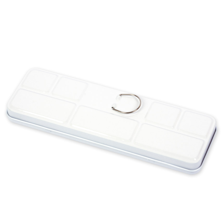 У каждого пенала имеется металлическое кольцо для удобного использования красок на пленэре и переноски пенала, и металлическая палитра для смешивания красок.