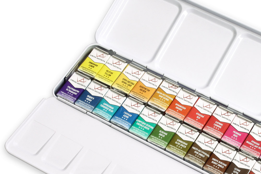Металлический пенал Vista-Artista для акварели в кюветах.