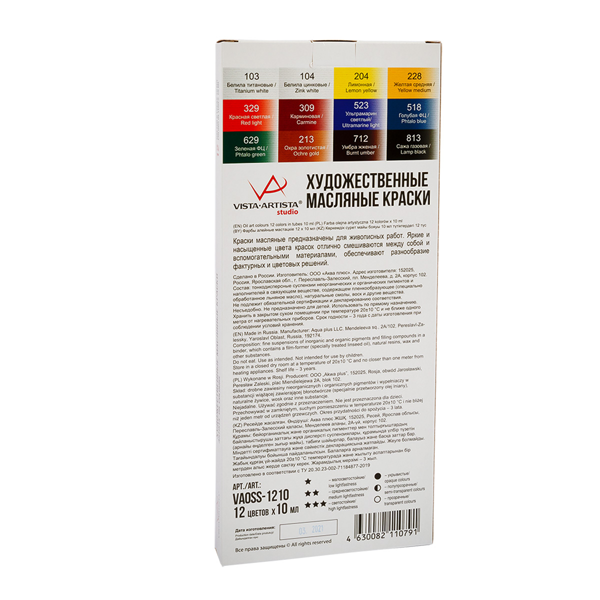 Краска масляная "VISTA-ARTISTA" Studio Набор 12 цв. 10 мл .