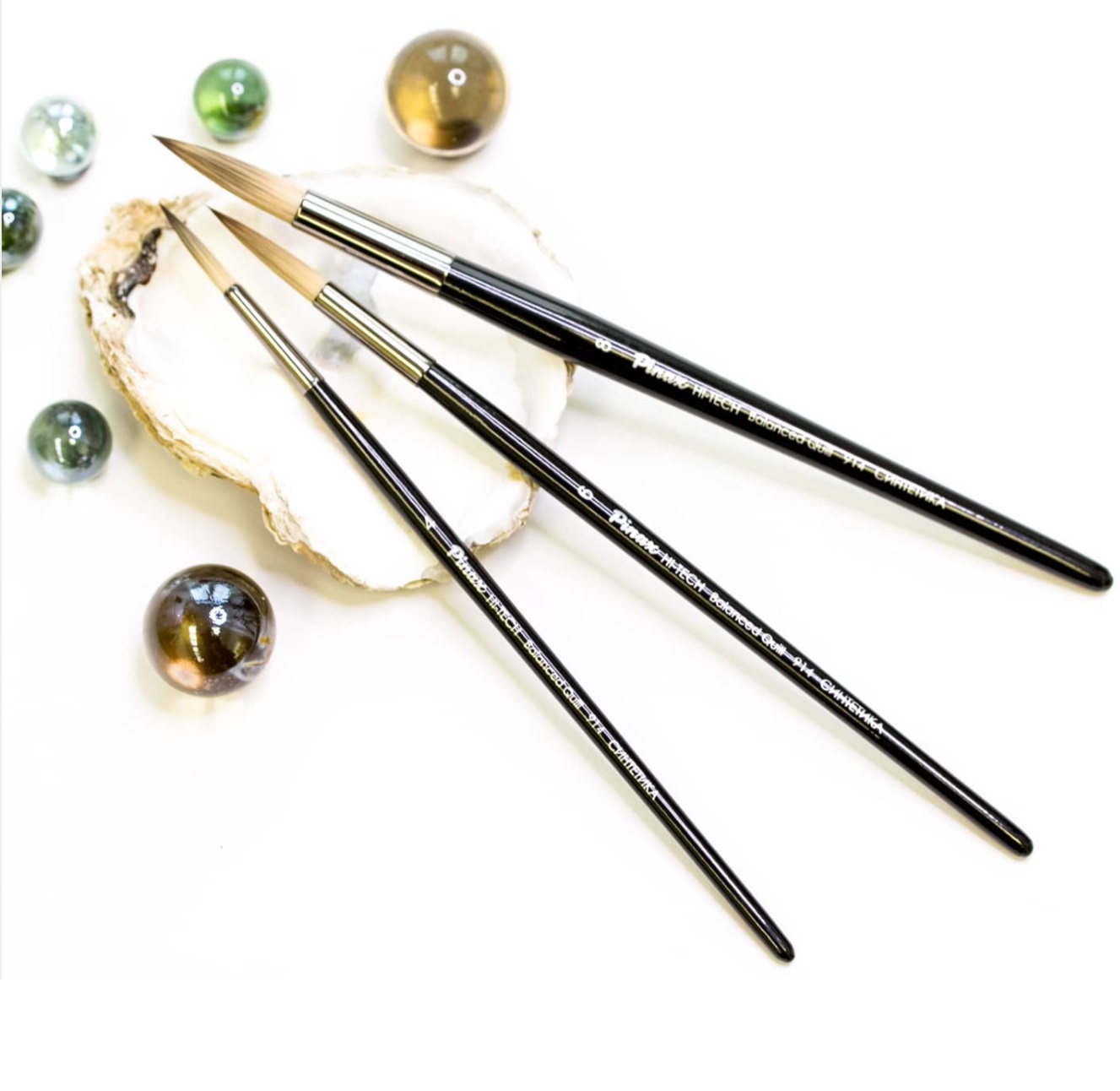 Круглые кисти каллиграфического типа "HI-TECH Balanced Quill " от Pinax производятся в Южной Корее из упругой синтетики (высококачественной имитации колонка).