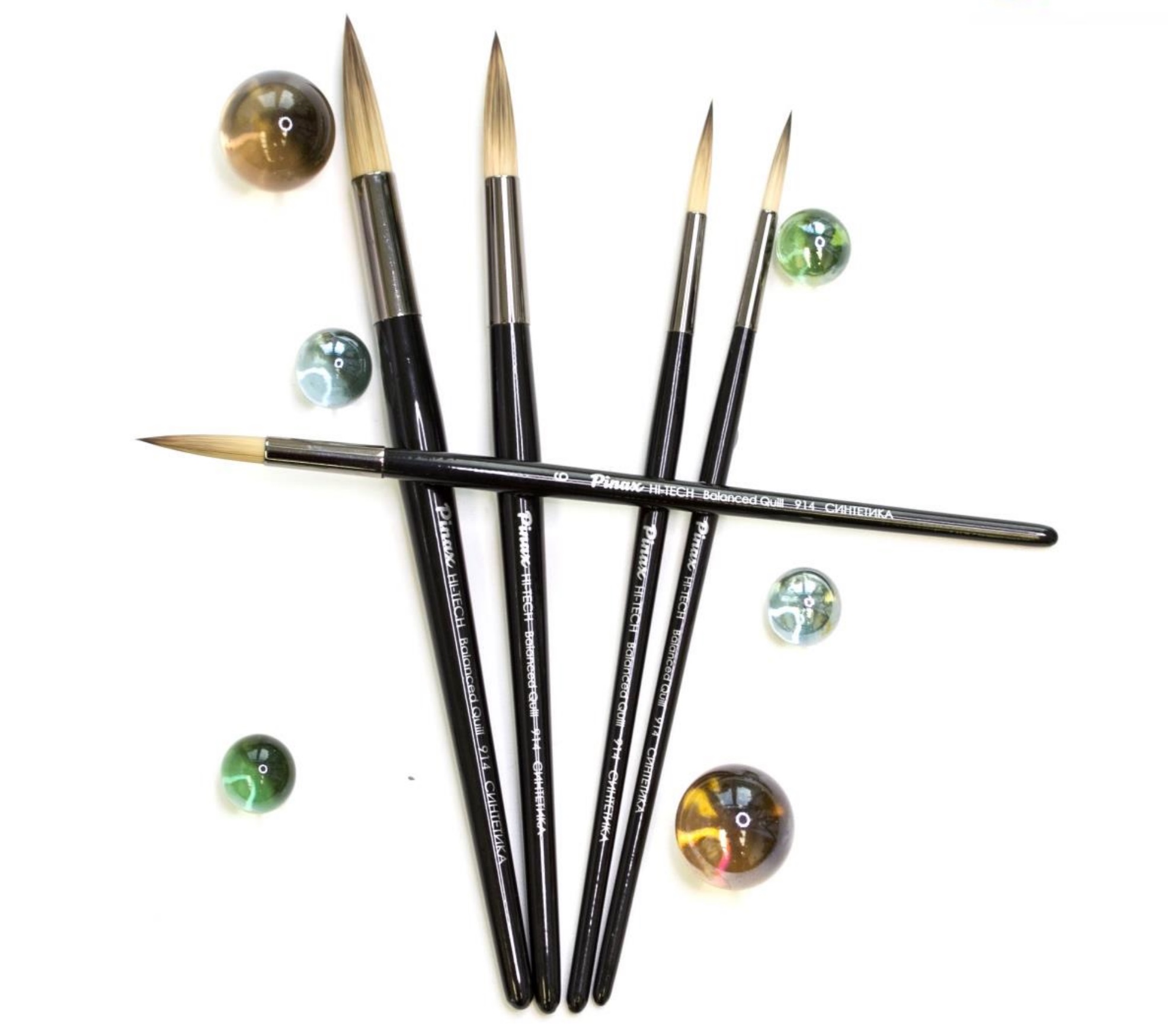 Круглые кисти каллиграфического типа "HI-TECH Balanced Quill " от Pinax производятся в Южной Корее из упругой синтетики (высококачественной имитации колонка).