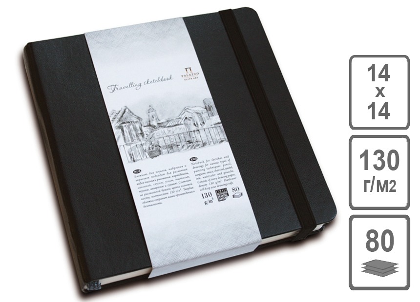 Скетчбук "Travelling sketchbook" Черный 140*140 мм, 80 листов.