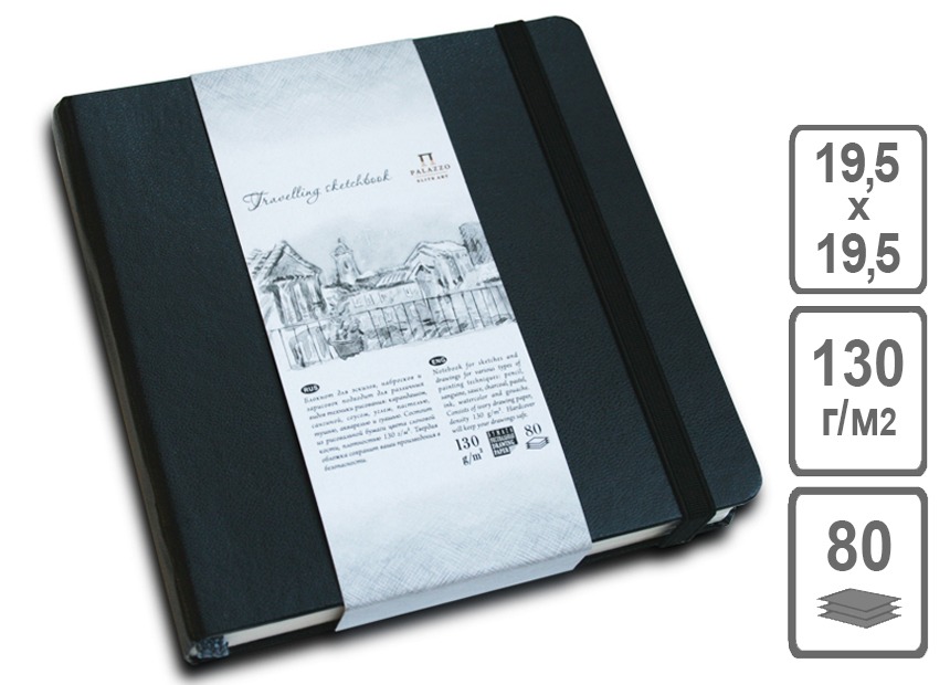 Скетчбук "Travelling sketchbook" Черный 195*195мм, 80 листов.