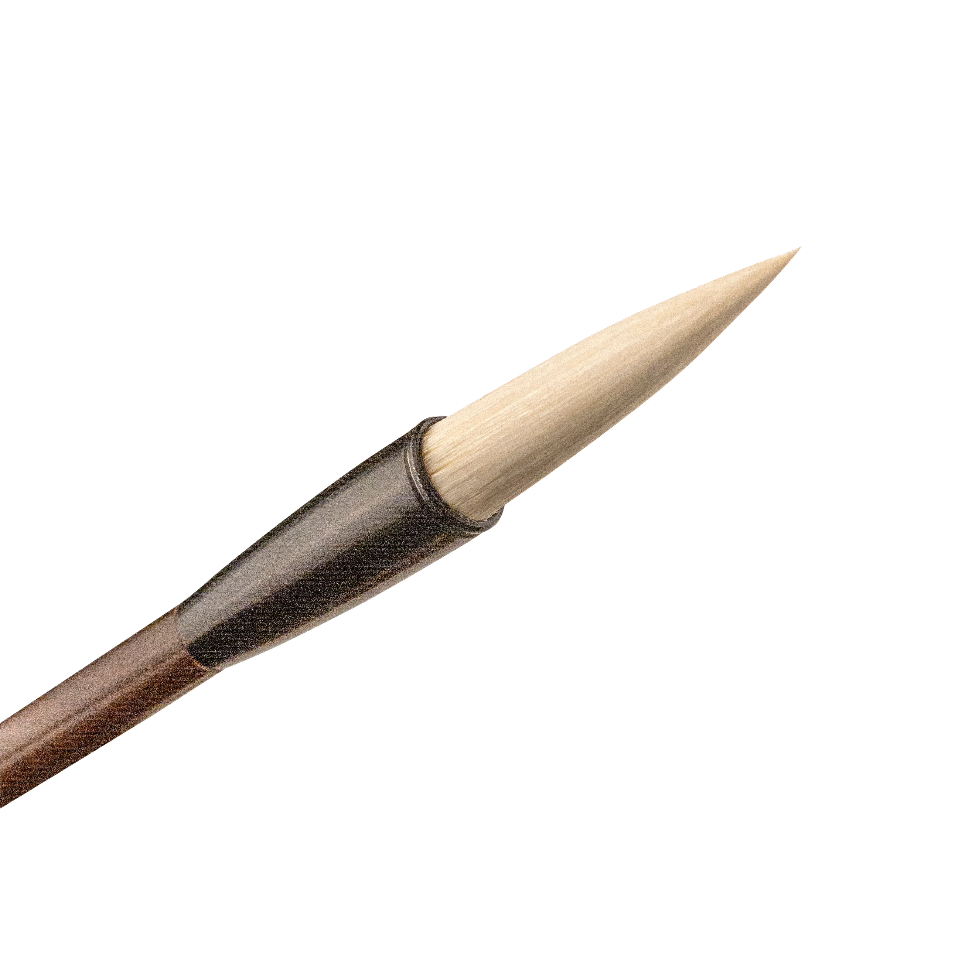 Круглая кисть для каллиграфии из ворса козы. Ворс козы по характеристикам схож с щетинистым ворсом, но более мягкий. Кисть хорошо набирает и отдает тушь, можно использовать для работы с водными красками. Качественная сборка позволяет кисти держать острую вершинку для создания самых тонких элементов.