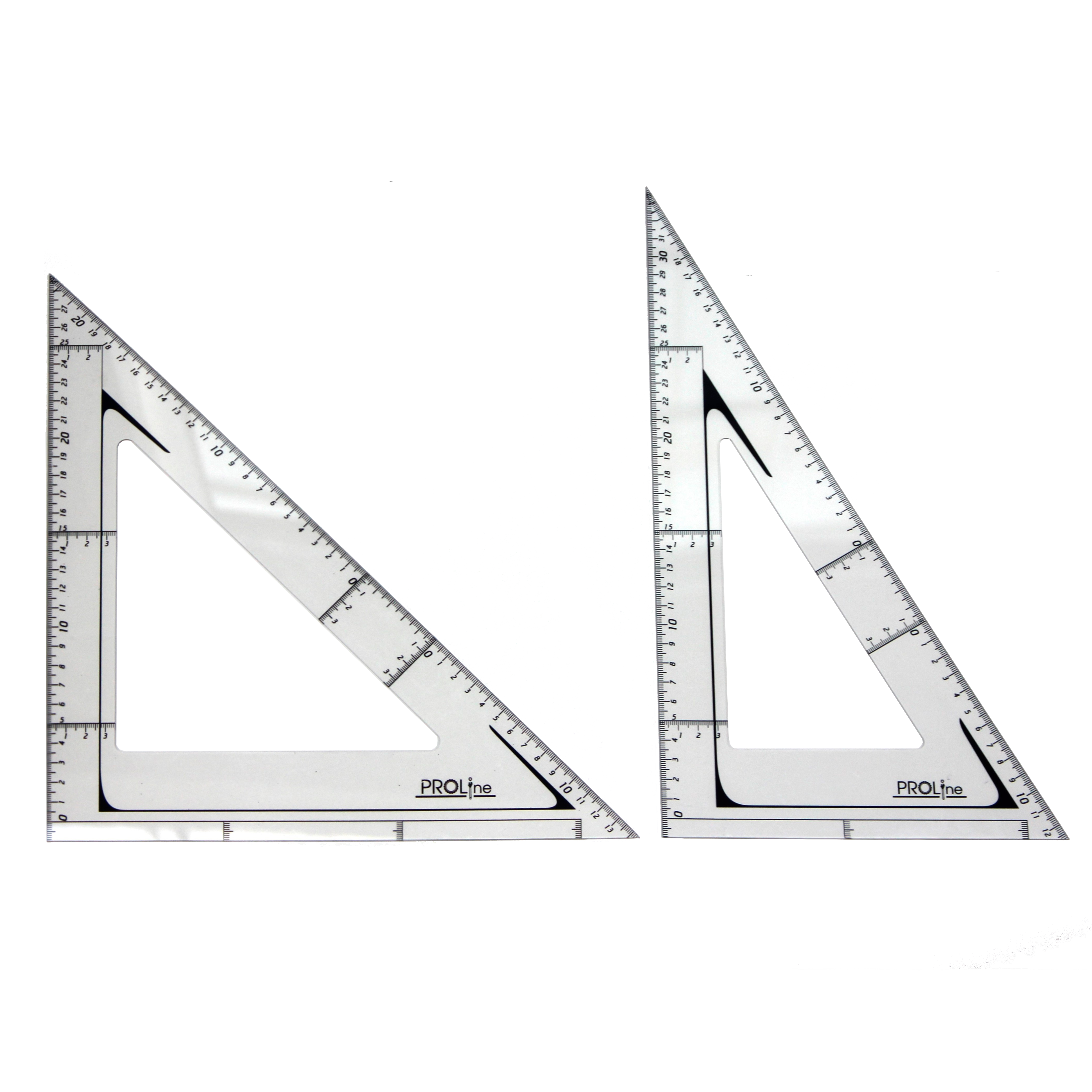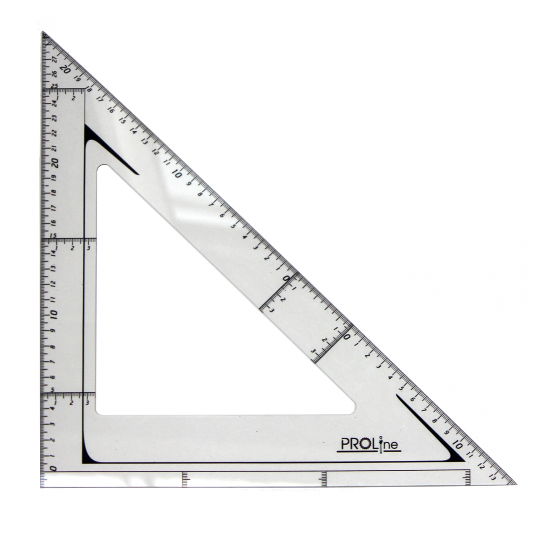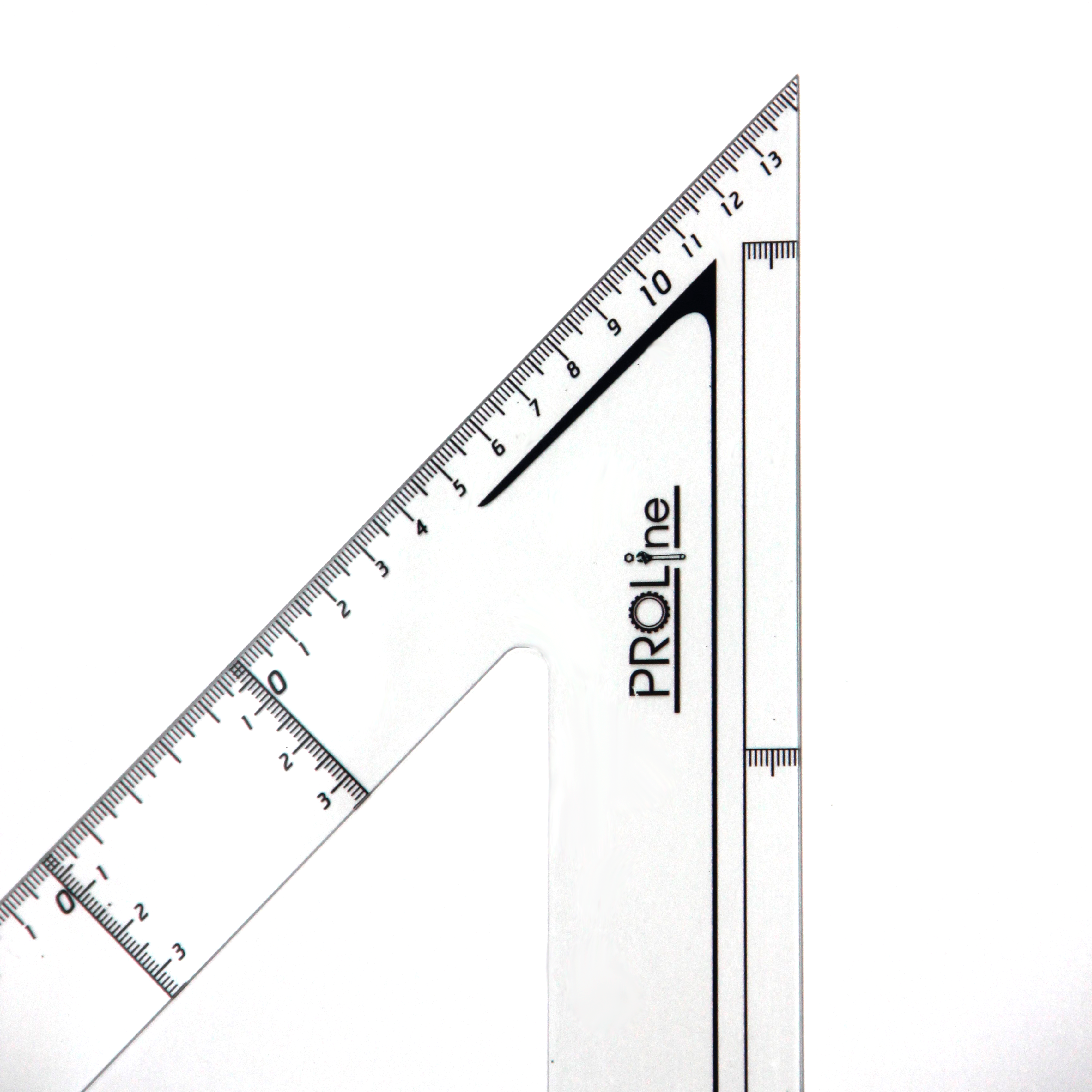 Удобный угольник из прозрачного монолитного поликарбоната, у данного угольника не скалываются углы, его разметка не стирается и он не сломается ни при каких условиях. Так как для изготовления этого инструментов применяется твёрдый и абсолютно не ломающийся прозрачный материал, разметка нанесена с помощью ультрафиолетовой печати, которая является самым прочным видом печати.