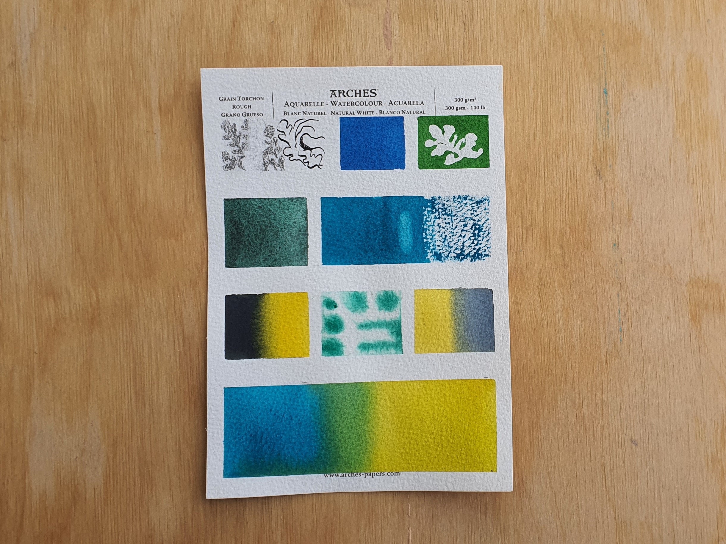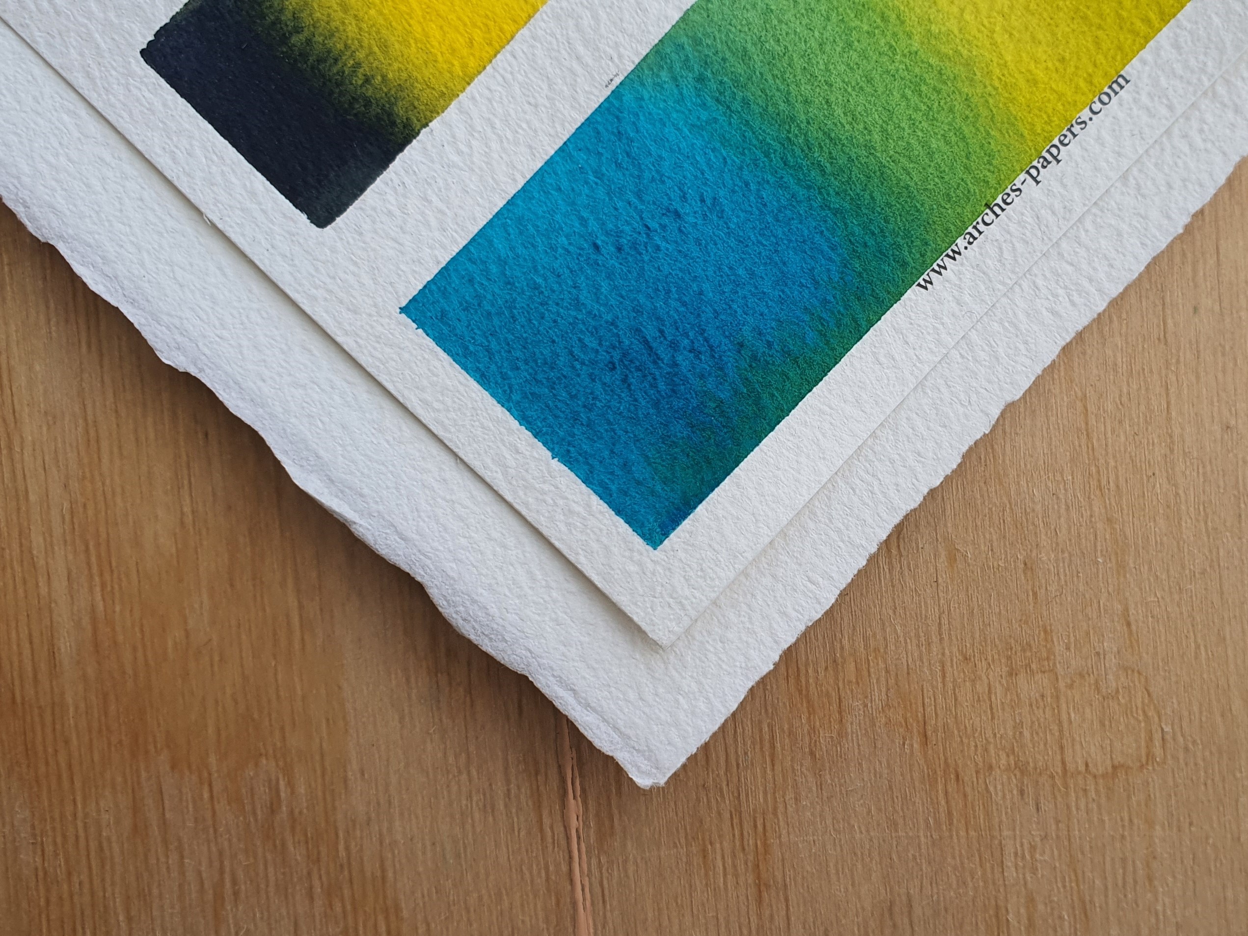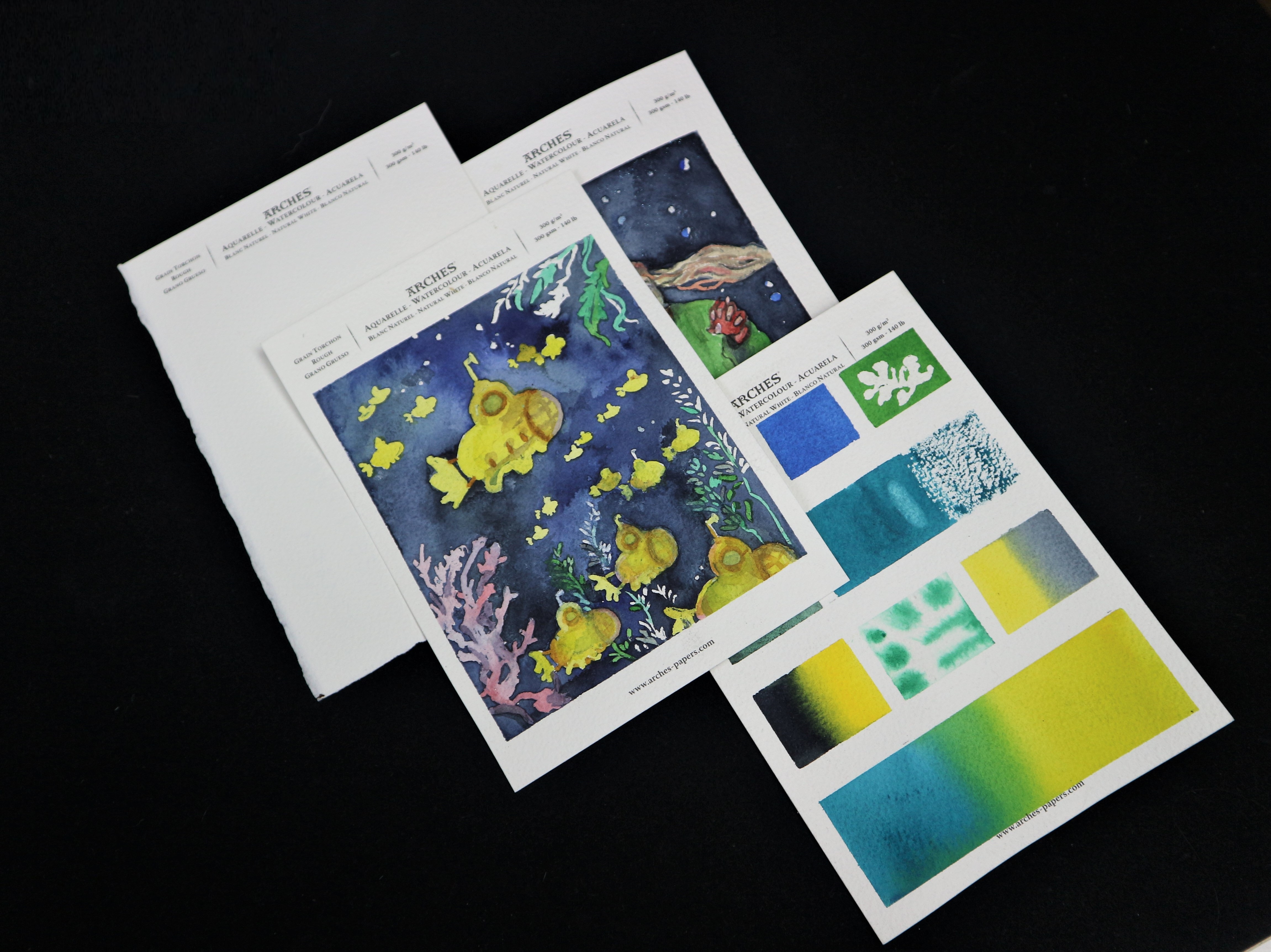 Как вывод - эта бумага создана для экстремальных влажных техник, потому что она невероятно стабильна во влажном состоянии, очень плотная и приятная на ощупь. Самые фактурные, яркие и «вкусные» градиенты, которые являются таковыми благодаря зрительному объёму и высочайшему уровню грамотного распределения краски. Не самый очевидный выбор для рисовки перьями, но техники ограничения (маска) на бумаге прекрасно работают. Великолепные показатели в тестах сухая кисть и грануляция.