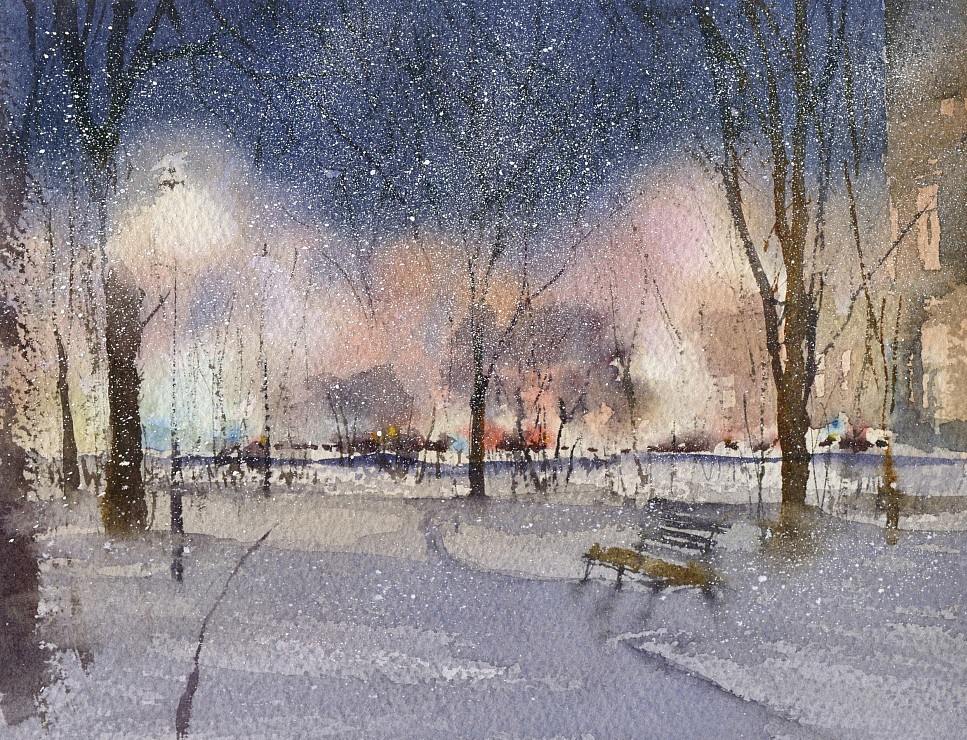 Лист держит слои и слои. Даже при довольно сухом и небрежном нанесении, краски идеально смешиваются прямо на листе и предыдущие слои «светятся» сквозь уже нанесённые.