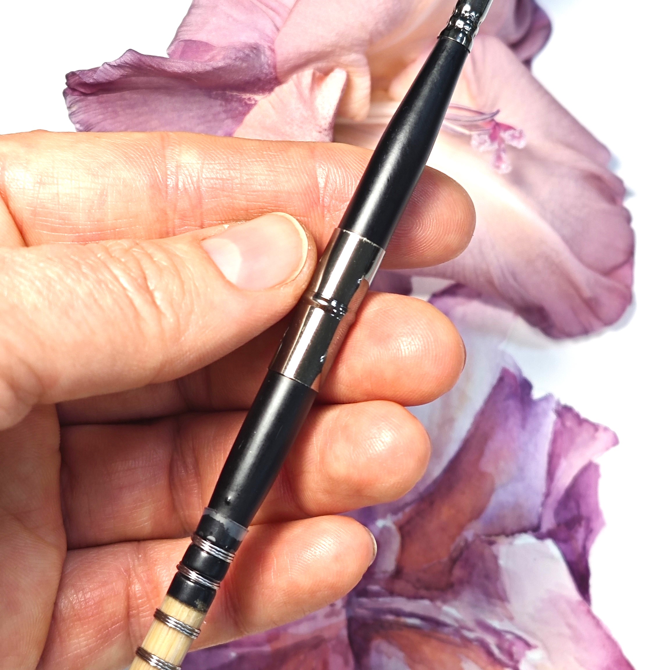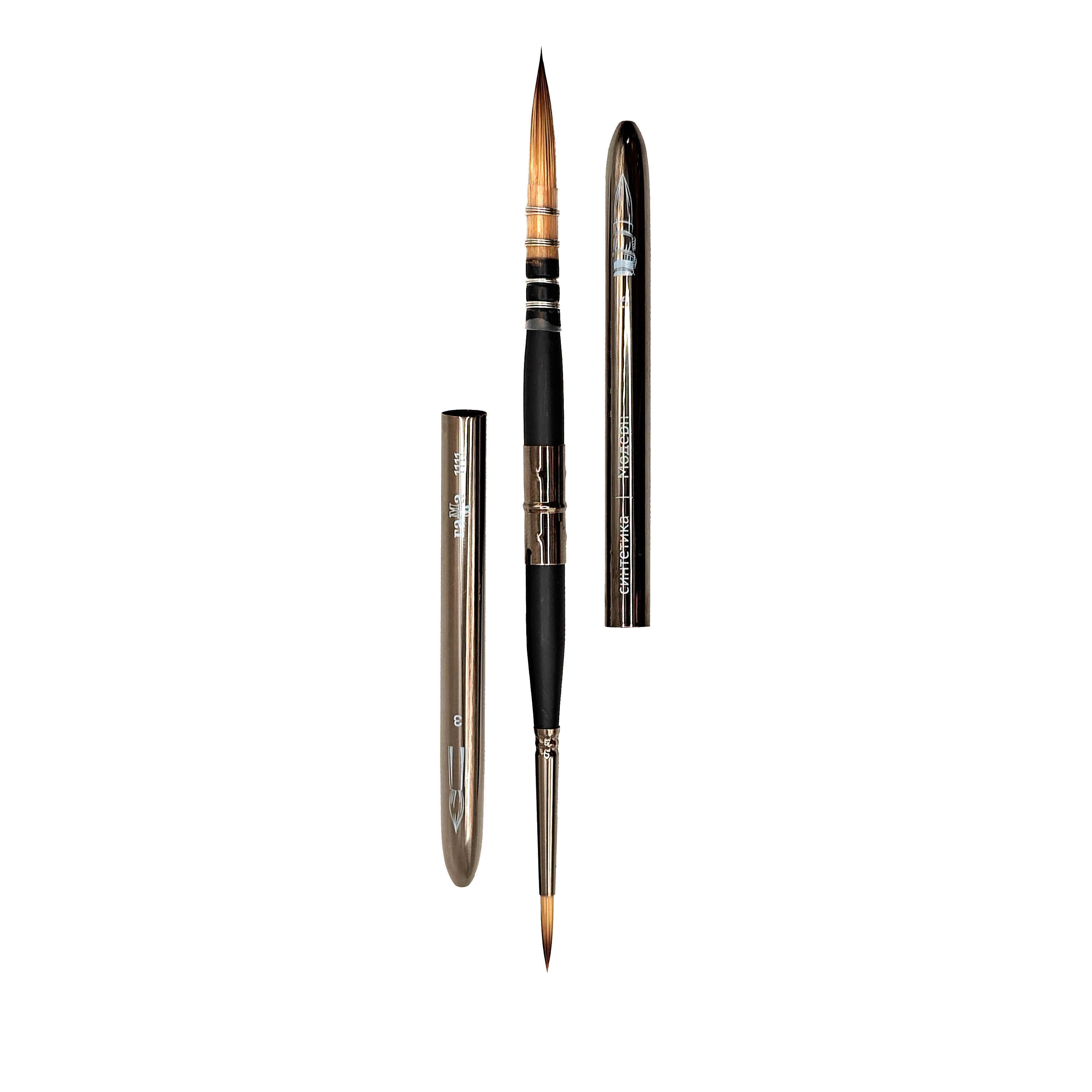 Художественные кисти ГАММА серии «Модерн» – одни из первых художественных кистей бренда и хорошо знакомы художникам. Кисть в тревел-формате, имеет складной корпус с металлическим защитным колпачком. Кисть уникальной двусторонней конструкции: поочередно можно использовать тонкую универсальную кисть №3 и круглую кисть №6 с французским креплением.