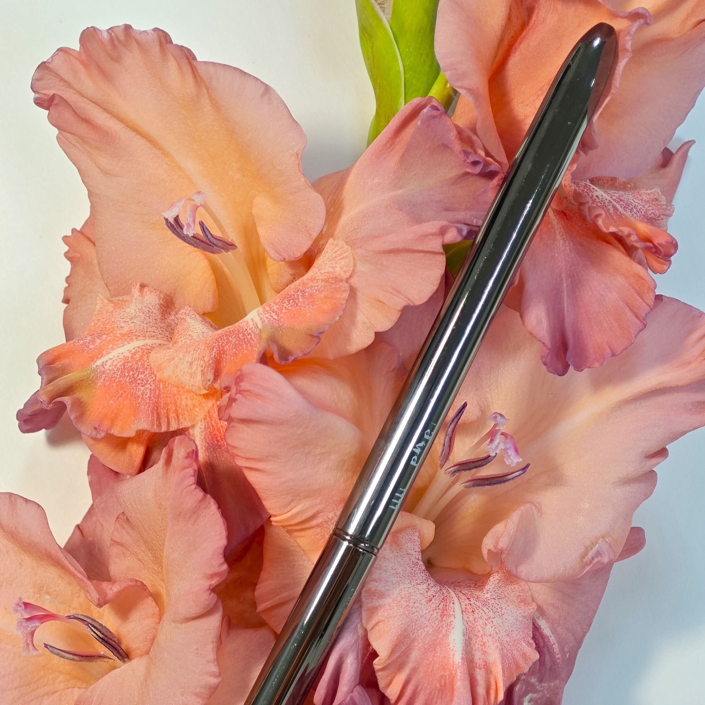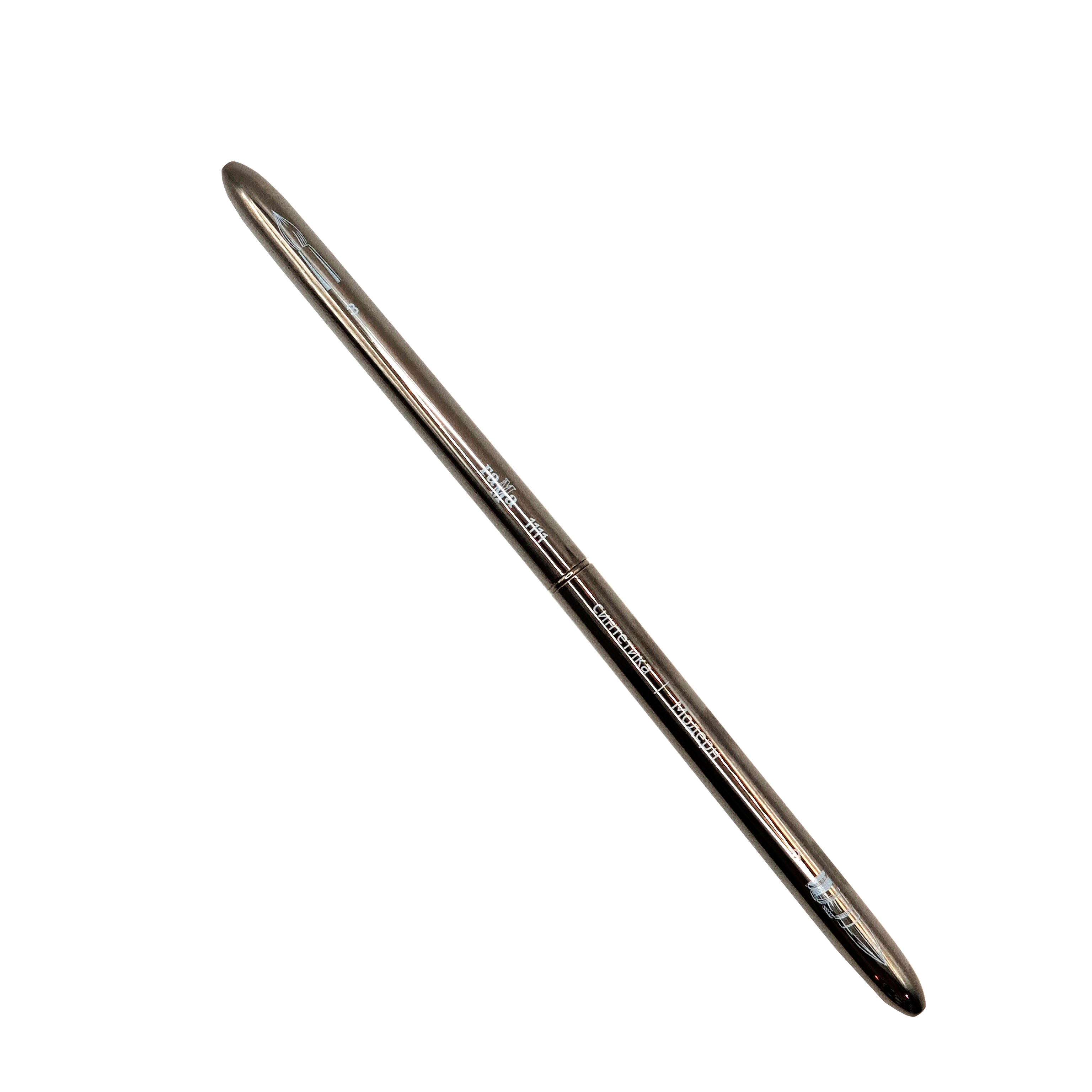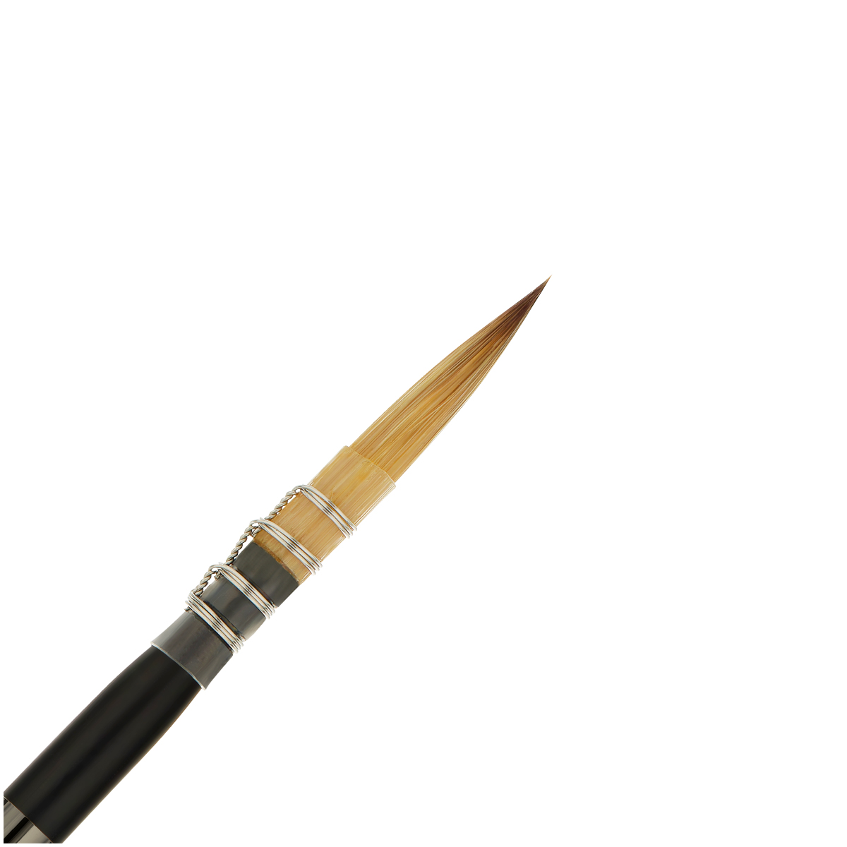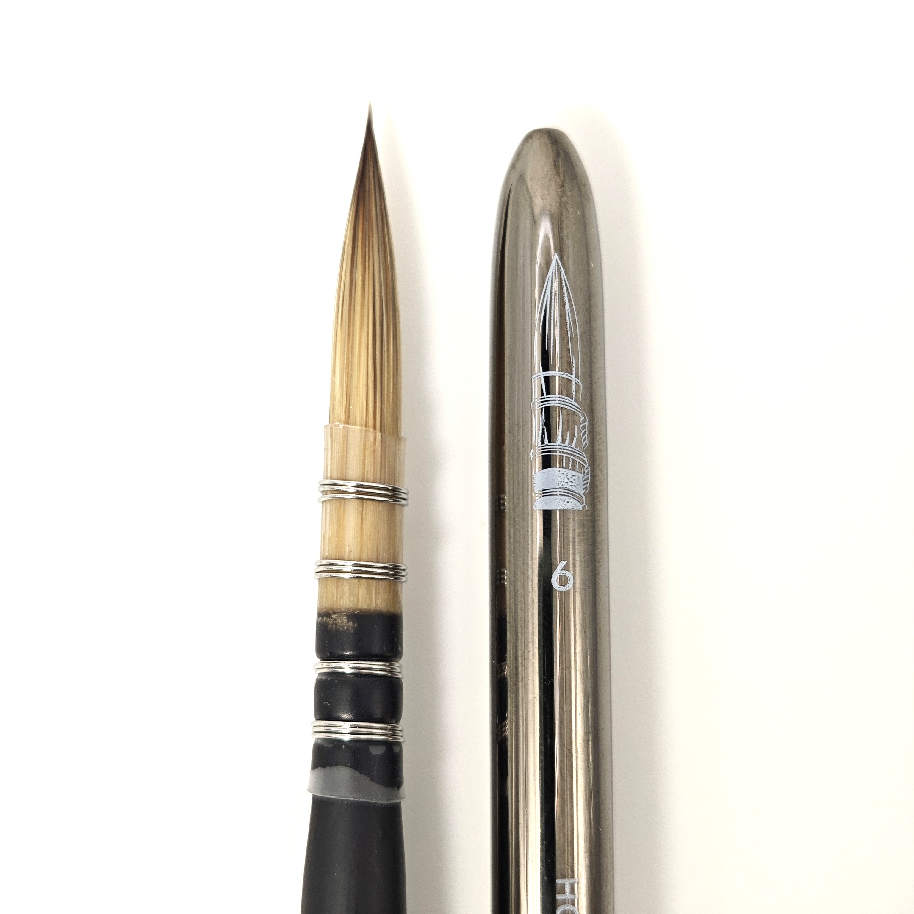 Корпус и обойма выполнены из никелированной латуни темного цвета с жемчужным эффектом, ручка кисти из березы, покрытая матовым лаком. Кисть в индивидуальном пакете.