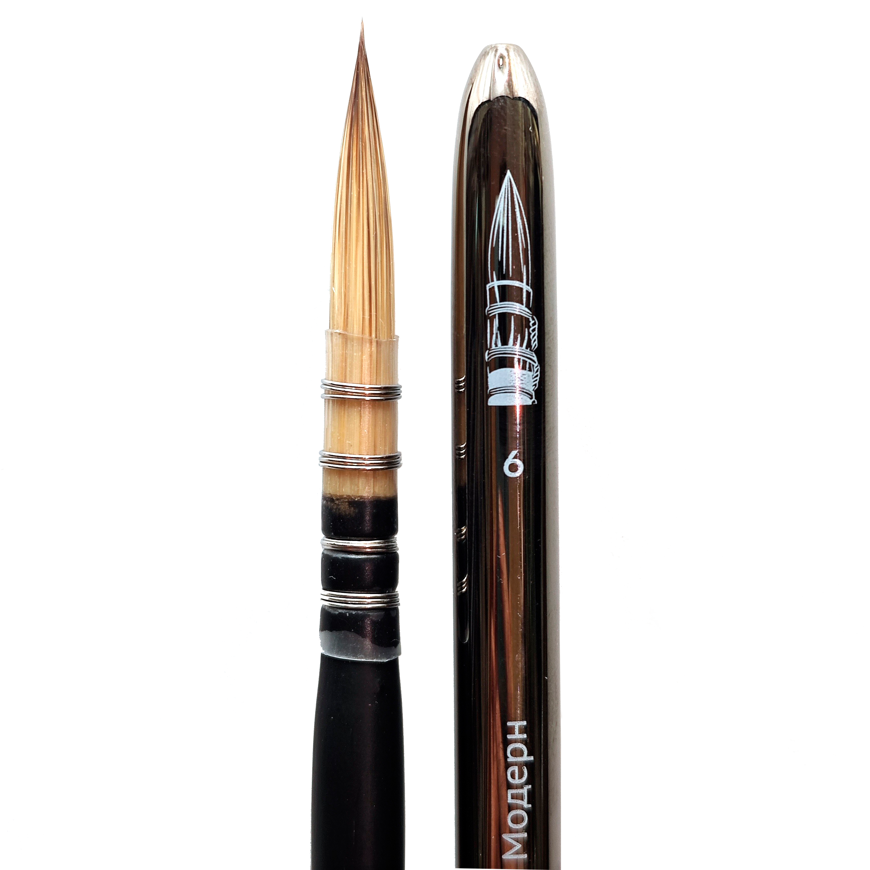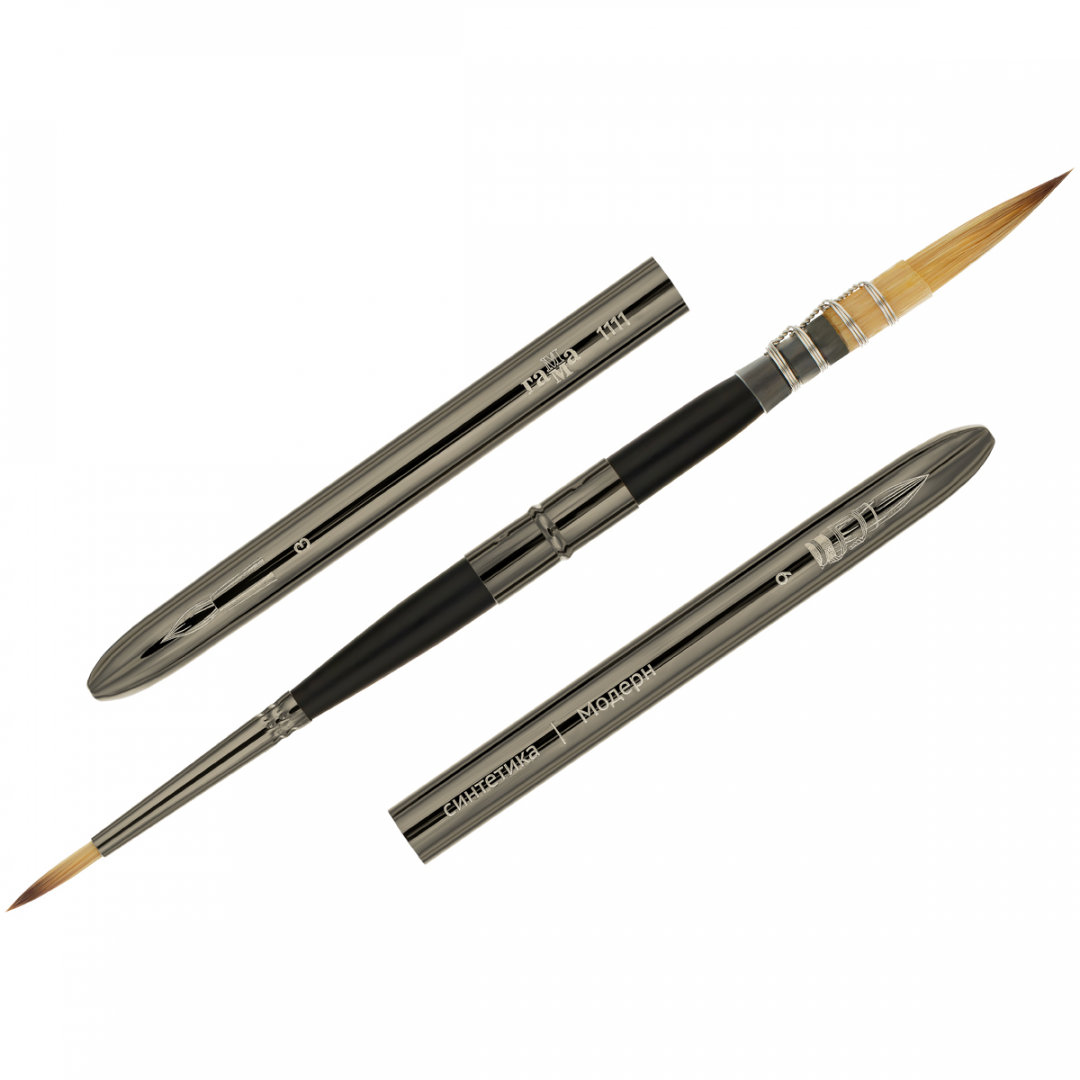 Главное отличие кистей серии – это упругий волос средней жесткости. Плотная набивка пучка и тонкая синтетическая нить дают идеальное сочетание для живописи. Кисть хорошо набирает краску, контролируемо её отдает, мягко отвечает на каждое движение художника. Кисти «Модерн» универсальны и подойдут для красок разной консистенции. Металлические колпачки имеют вентиляционные отверстия, однако после пленэра рекомендуется просушить кисть для долговечной службы.
