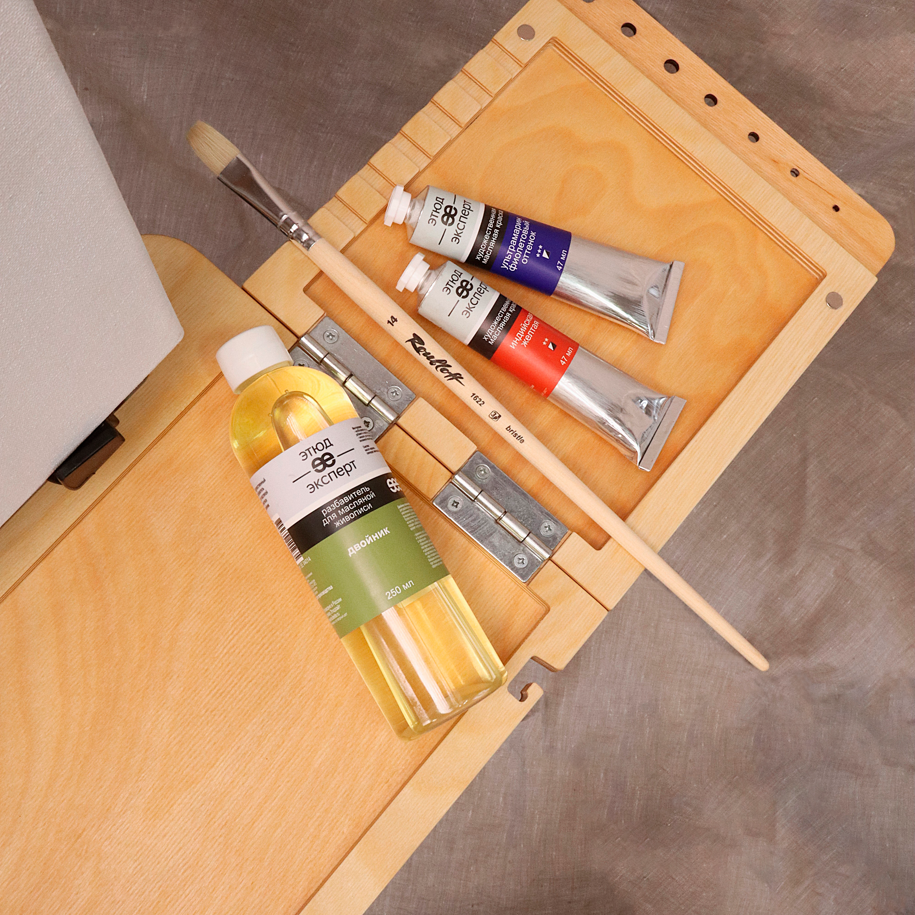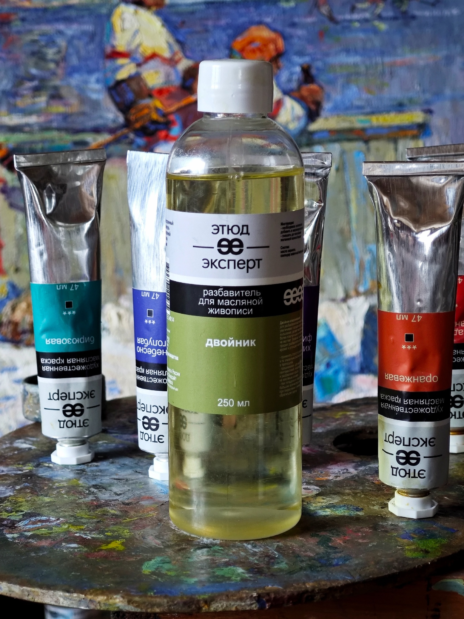Продукт подходит для работы с художественными масляными красками. Помогает создавать яркие и насыщенные цветом картины.