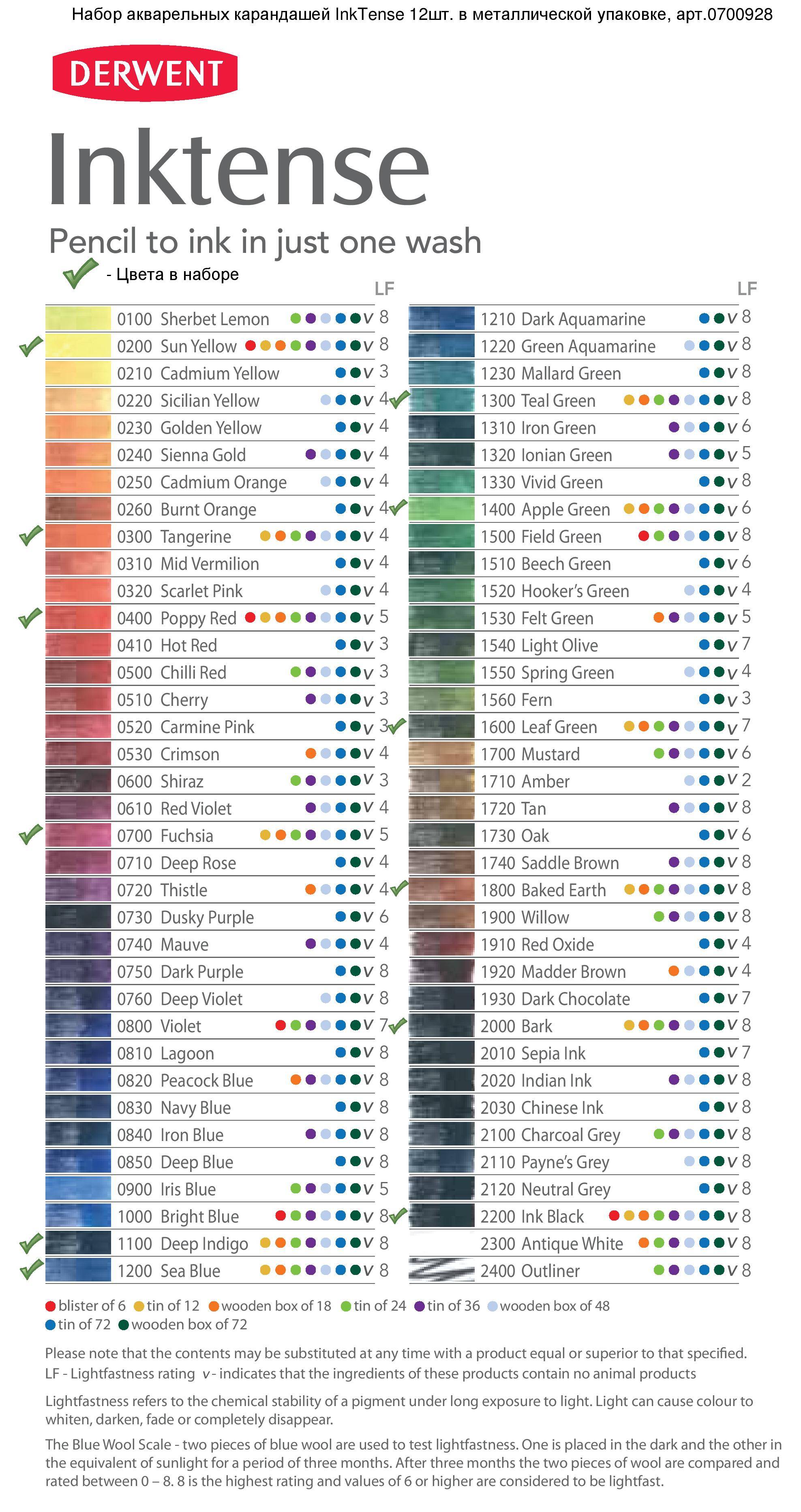 Карандаши Inktense можно использовать в сухом виде, как обычные цветные карандаши, но их исключительные свойства максимально проявляются при взаимодействии с водой. Водорастворимые пигменты под воздействием воды превращаются в яркие чернила. После высыхания чернила становятся водостойкими, и вы можете продолжать работу по высохшему рисунку. Водостойкость пигментов позволяет использовать акварельные карандаши "Inktense" для рисования на шелковой и хлопковой ткани.