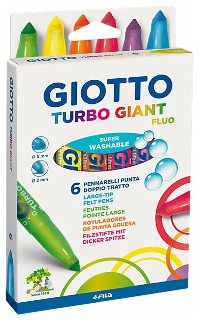Набор утолщенных фломастеров Giotto Turbo Giant - это набор фломастеров с увеличенным прочным пишущим узлом конической формы.