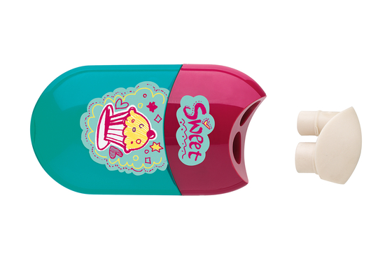 Точилка с контейнером и ластиком, с двумя отверстиями, капкейк, 5 шт.