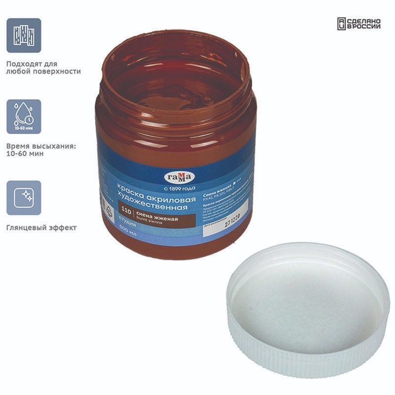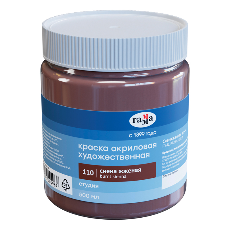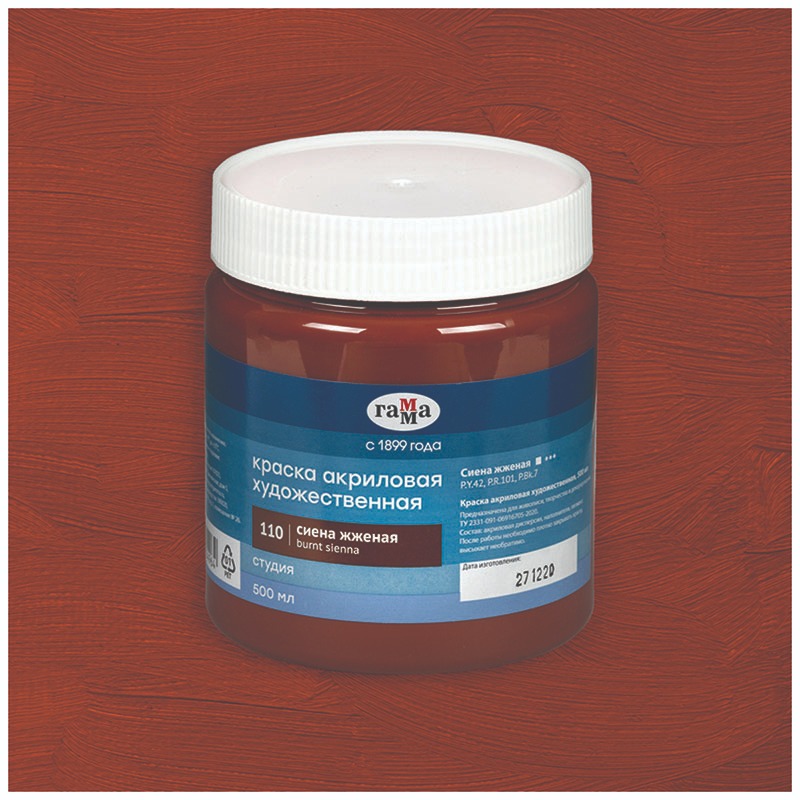 Краска акриловая художественная "Студия", 500мл, банка, сиена жженая