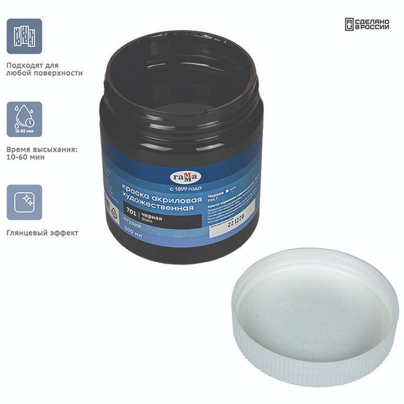Новые акриловые краски "Студия" предназначены для художественно-живописных и декоративно-прикладных работ. Их отличают насыщенные цвета, высокая адгезия, отличная прочность. После высыхания становятся глянцевыми, практически не темнеют, специальные добавки позволяют максимально раскрыть красоту цвета. Акриловые краски "Студия" обладают густой консистенций, высокой разносимостью, позволяя писать в различных техниках живописи. Время высыхания от 10 минут до 1 часа в зависимости от толщины слоя краски. Подходят для бумаги, картона, грунтованного холста, дерева, стекла, кожи, ткани. Большая банка - больше возможностей для творчества.