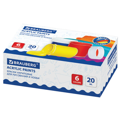 Акриловые краски BRAUBERG отлично подойдут для рисования и оформительских работ. Яркие, насыщенные цвета отлично смешиваются, не тускнеют после высыхания и не выгорают при воздействии солнечных лучей. Легко наносятся практически на любую поверхность.