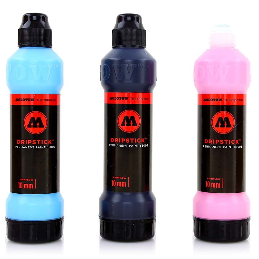 Маркеры - сквизеры оставляют сочные подтеки при работе ими, мягкий корпус бутылки позволяет регулировать сток чернил. Заправляются маркеры-сквизеры "Dripstick" спиртовыми чернилами, такими как "Coctail" и "Transformer".