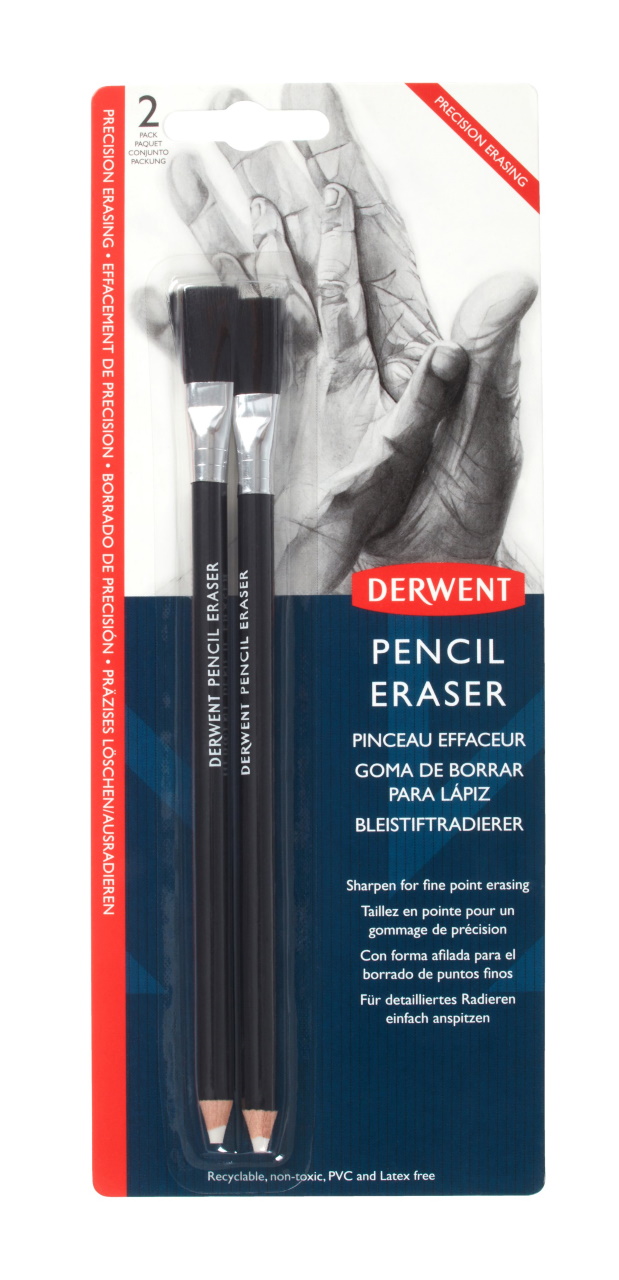 Ластик-карандаш - это тонкий ластик в удобном корпусе. Ластик можно точить как обычный карандаш, затачивая до тонкого наконечника. Мягкая щетка на конце карандаша легко сметает образовавшуюся пыль. Ластик-карандаш идеально подходит для стирания в небольших областях и создания бликов.