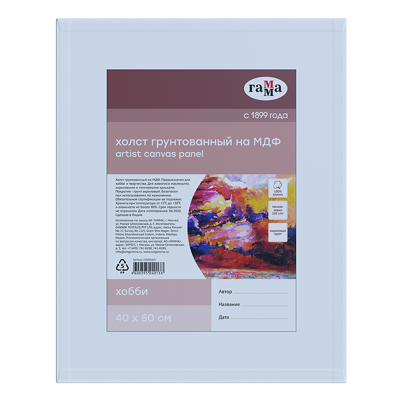 Холст на МДФ - отличное решение для эдютов, эскизов, учебных работ, работы на пленэре и в студии. Холст изготовлен из 100% индийского хлопка для живописи масляными, акриловыми и темперными красками, смешанных техник. У холста приятная мелкозернистая текстура. Покрытие – акриловый грунт (3 слоя). Основа холста - МДФ, прочный и долговечный материал.